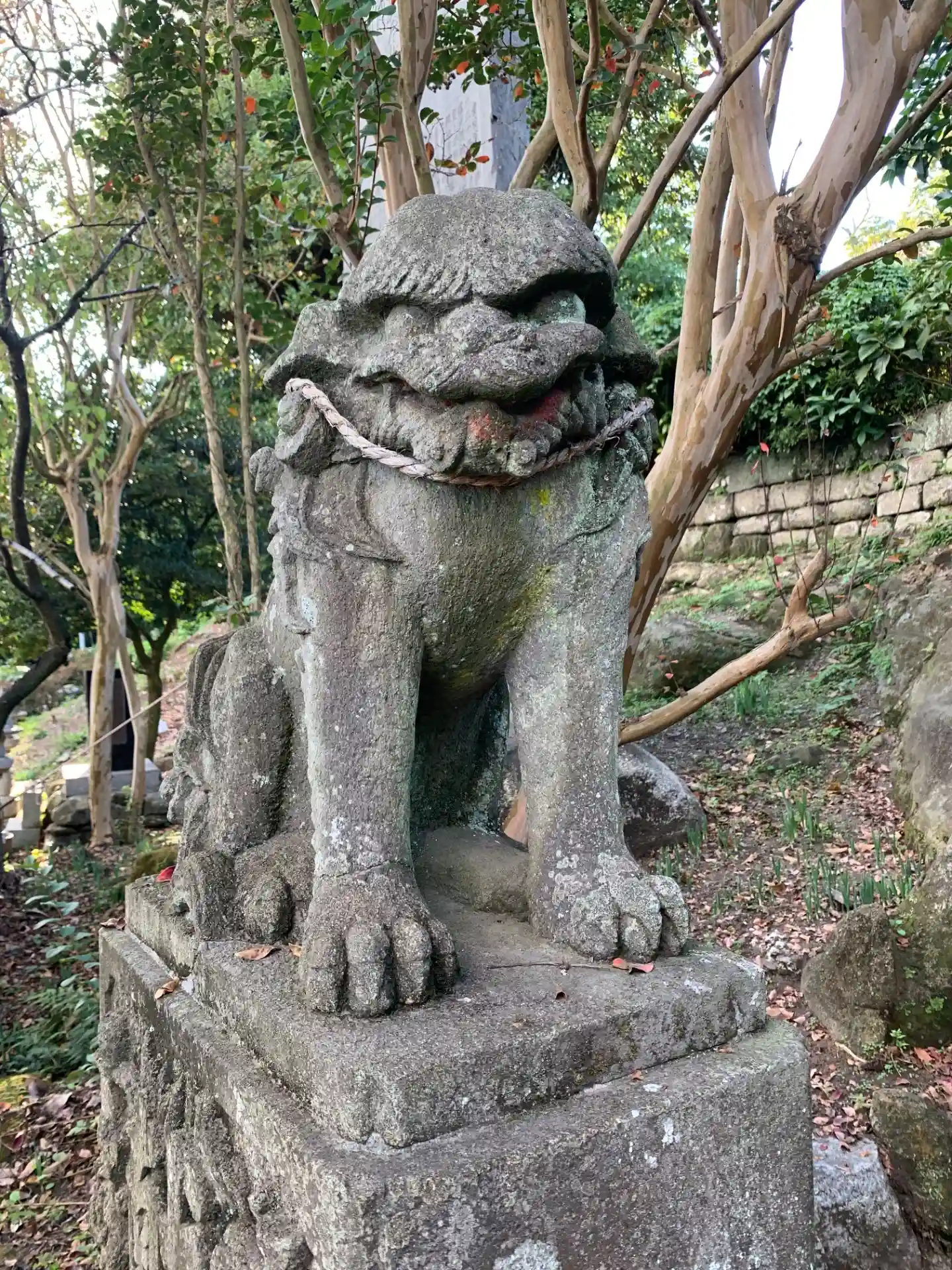 造船所の向かいにある神社。石段の中程には浪切不動があります。狛犬が昭和の海軍大尉の母が奉納したものだったり手水鉢に戦闘機のようなものが彫られていたりと、軍事基地としての性格が随所に見られます。