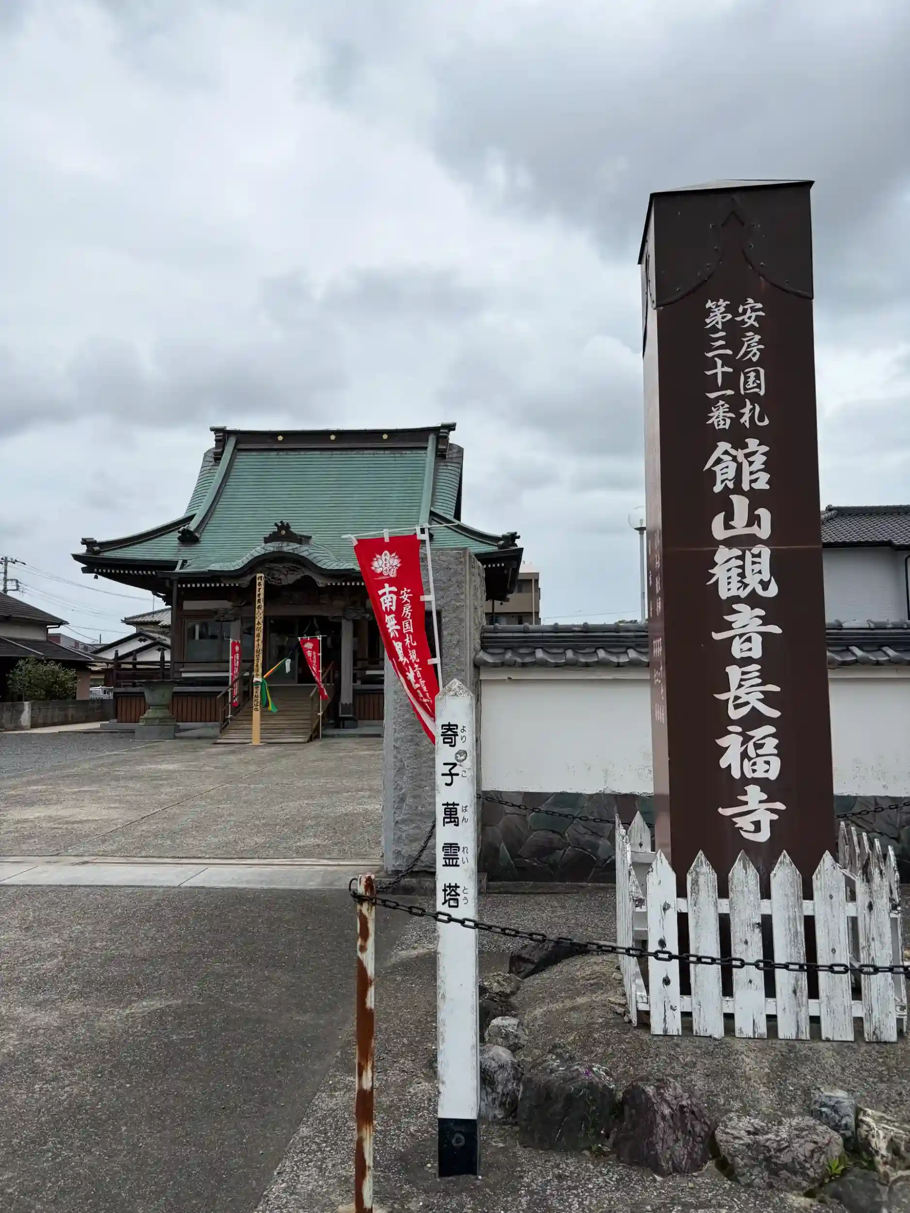 普門山 長福寺(ちょうふくじ, 真言宗 智山派, 創建年代不詳) 観音堂, 行基が創建, 本尊は不動明王, 札所本尊は千手観世音菩薩(行基作), 別称 館山観音, 安房国札三十四観音霊場31番札所