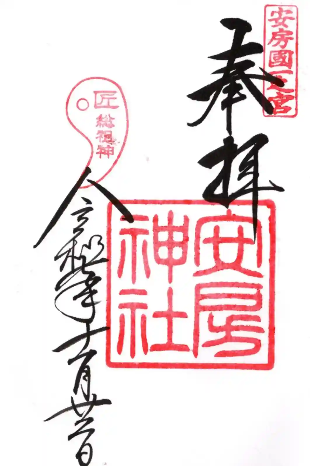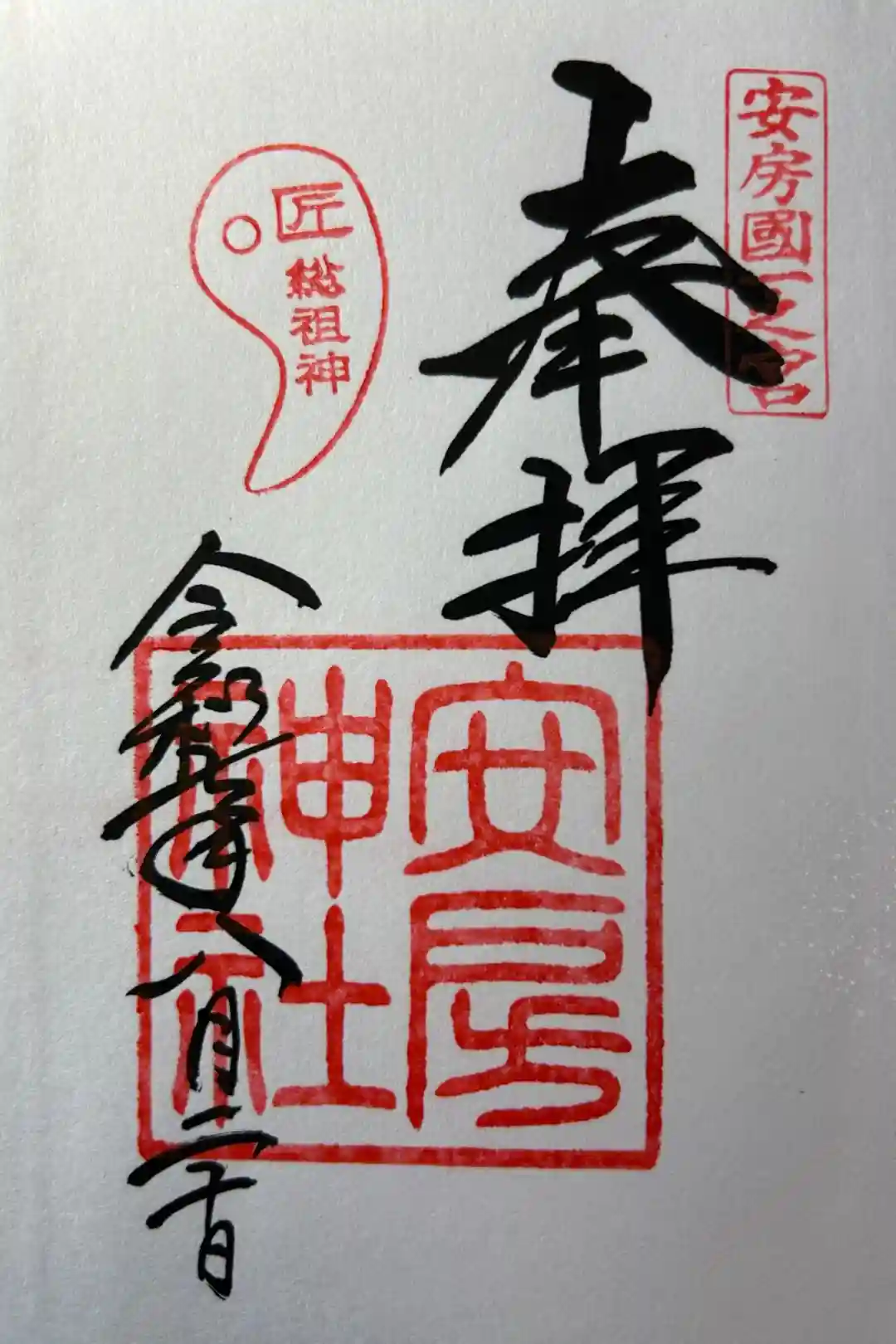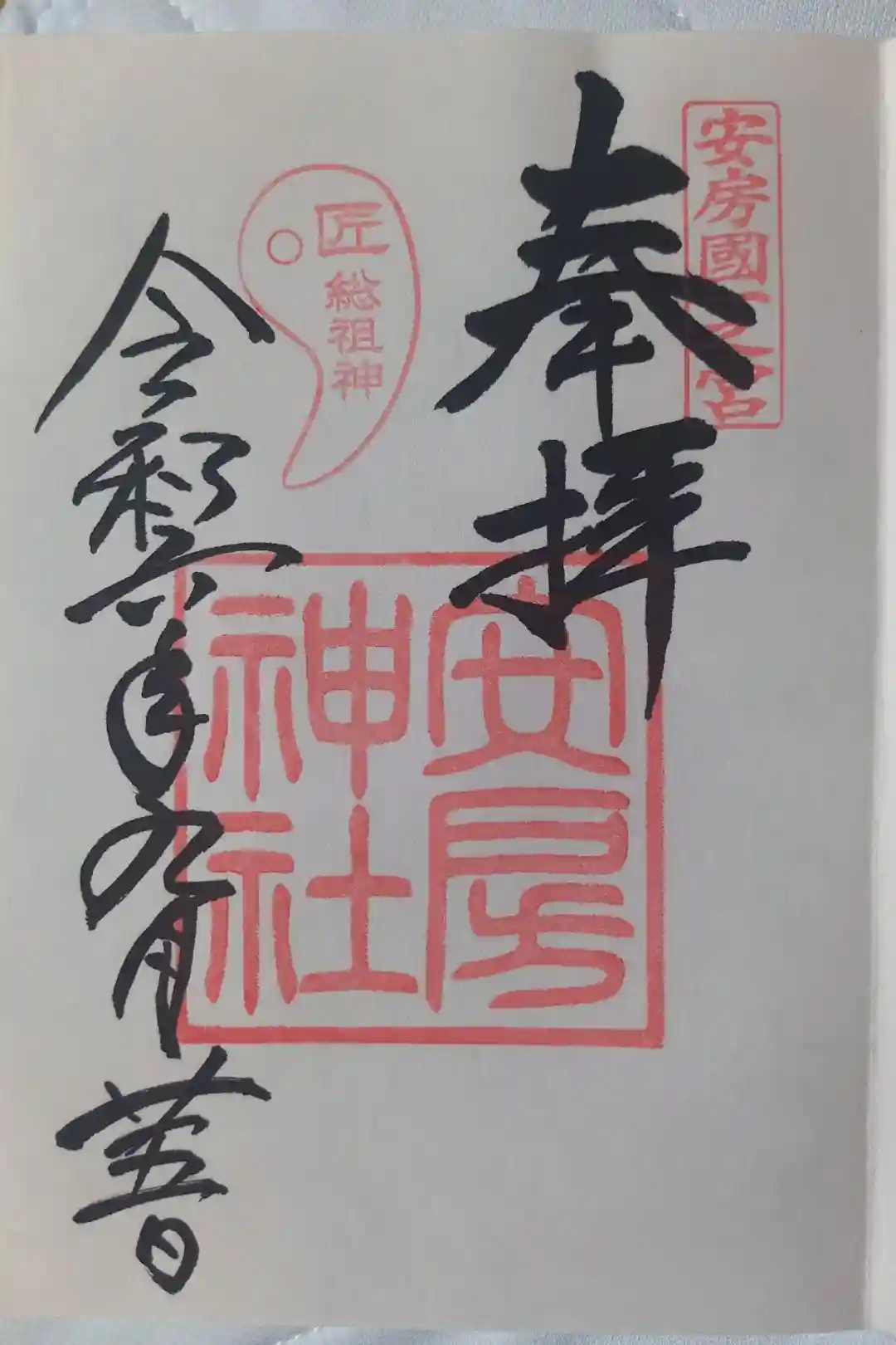 右上に安房國一之宮、左上には匠総祖神の印が押されています。