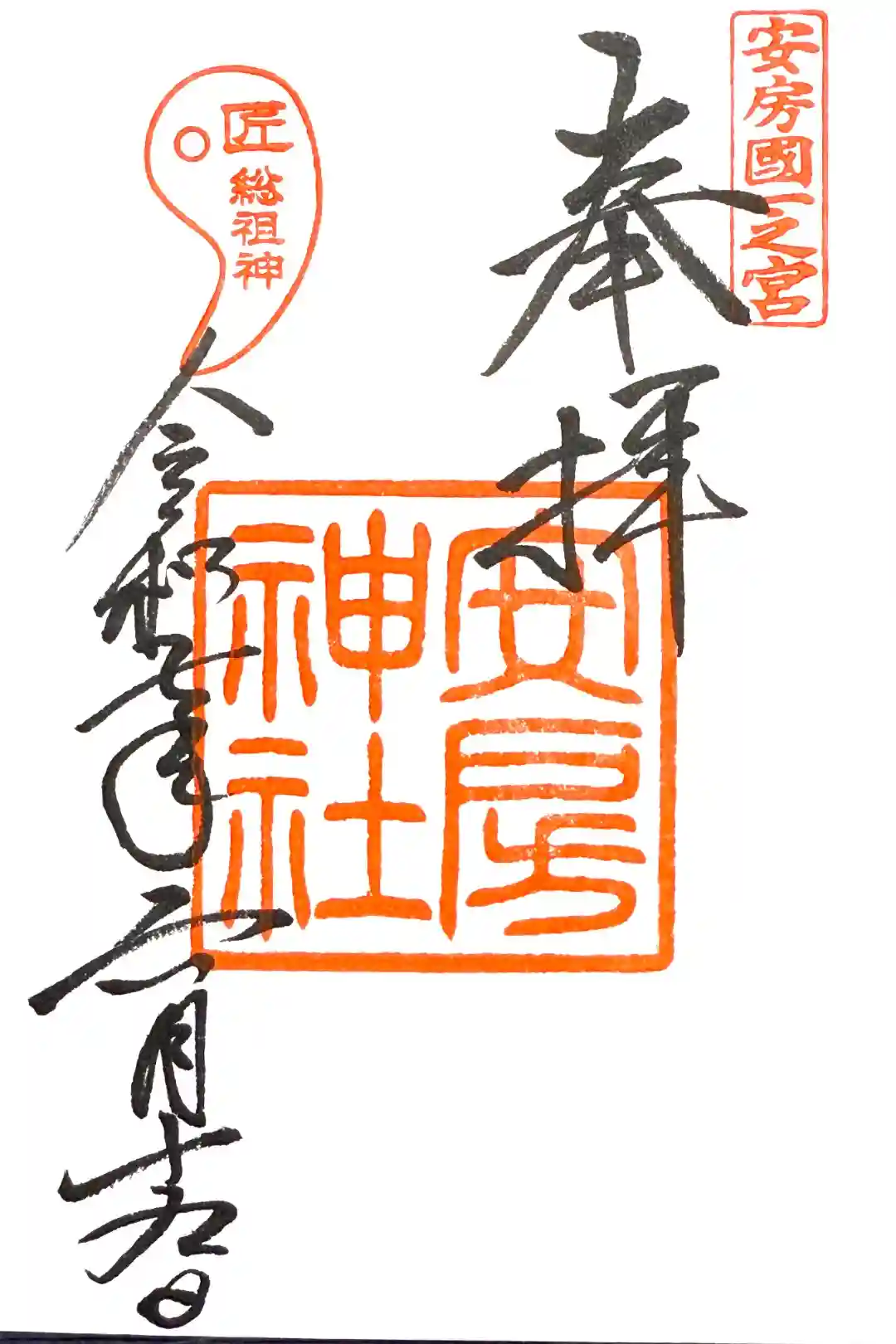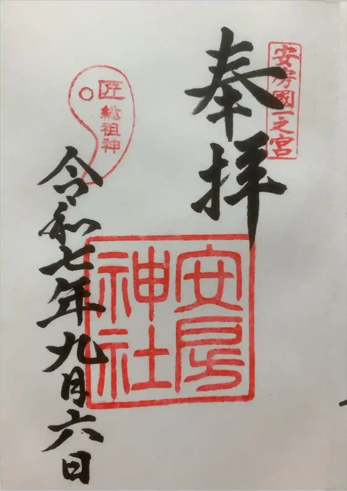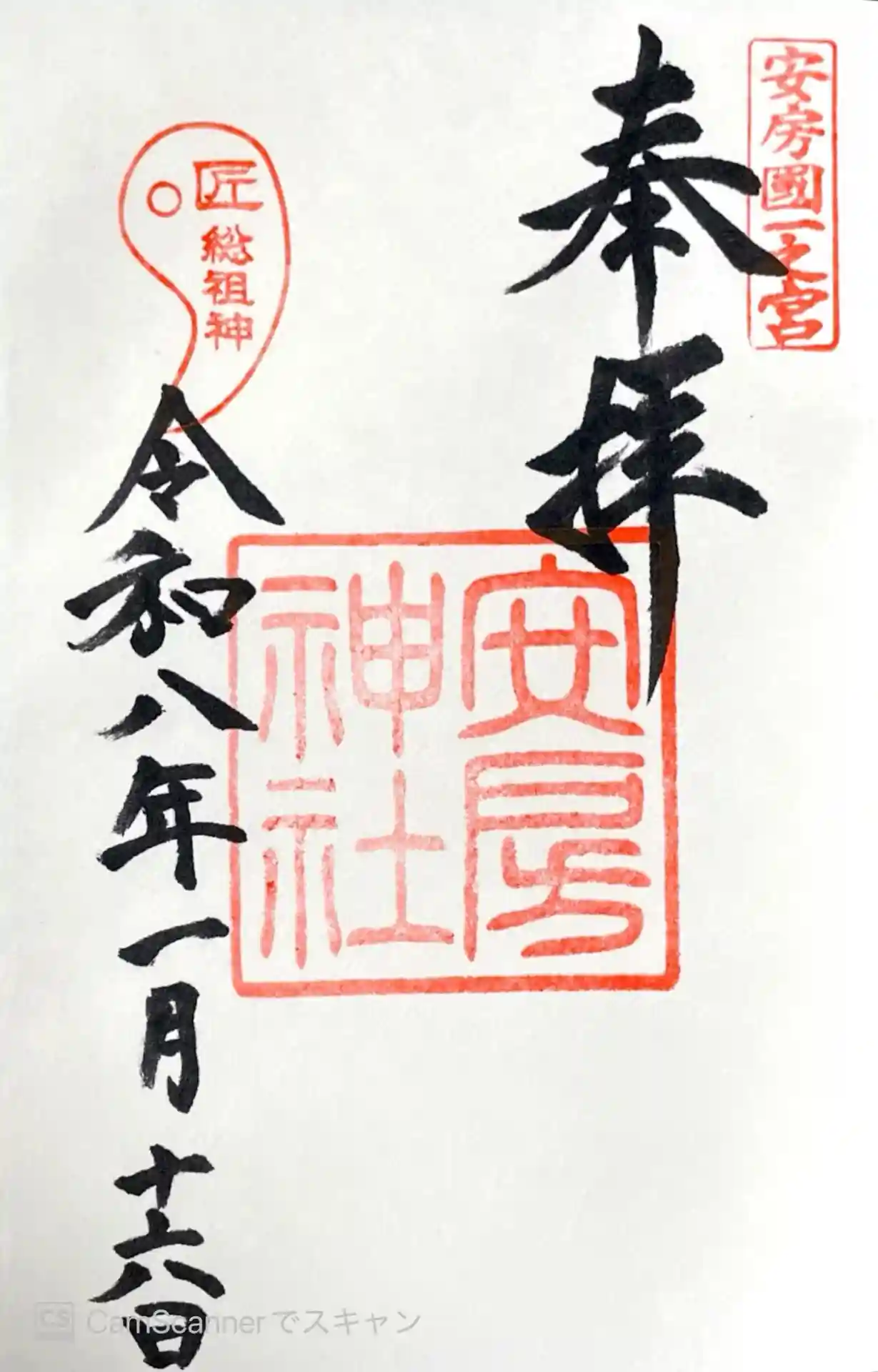 右上に安房國一之宮、左上には匠総祖神の印が押されています。