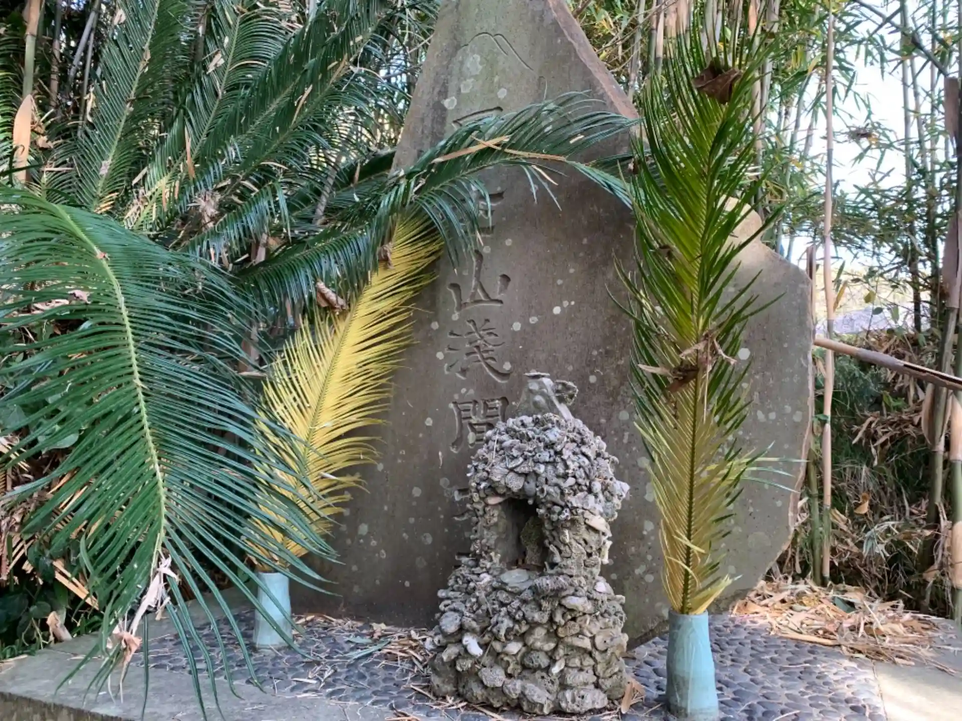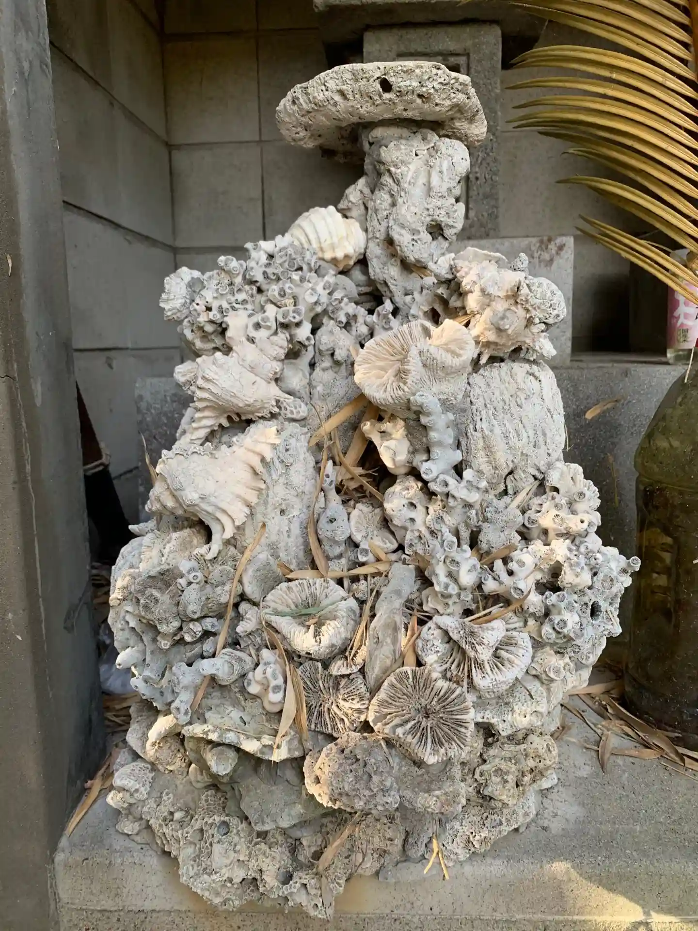 漂着物を固めて作った謎のオブジェがありました。