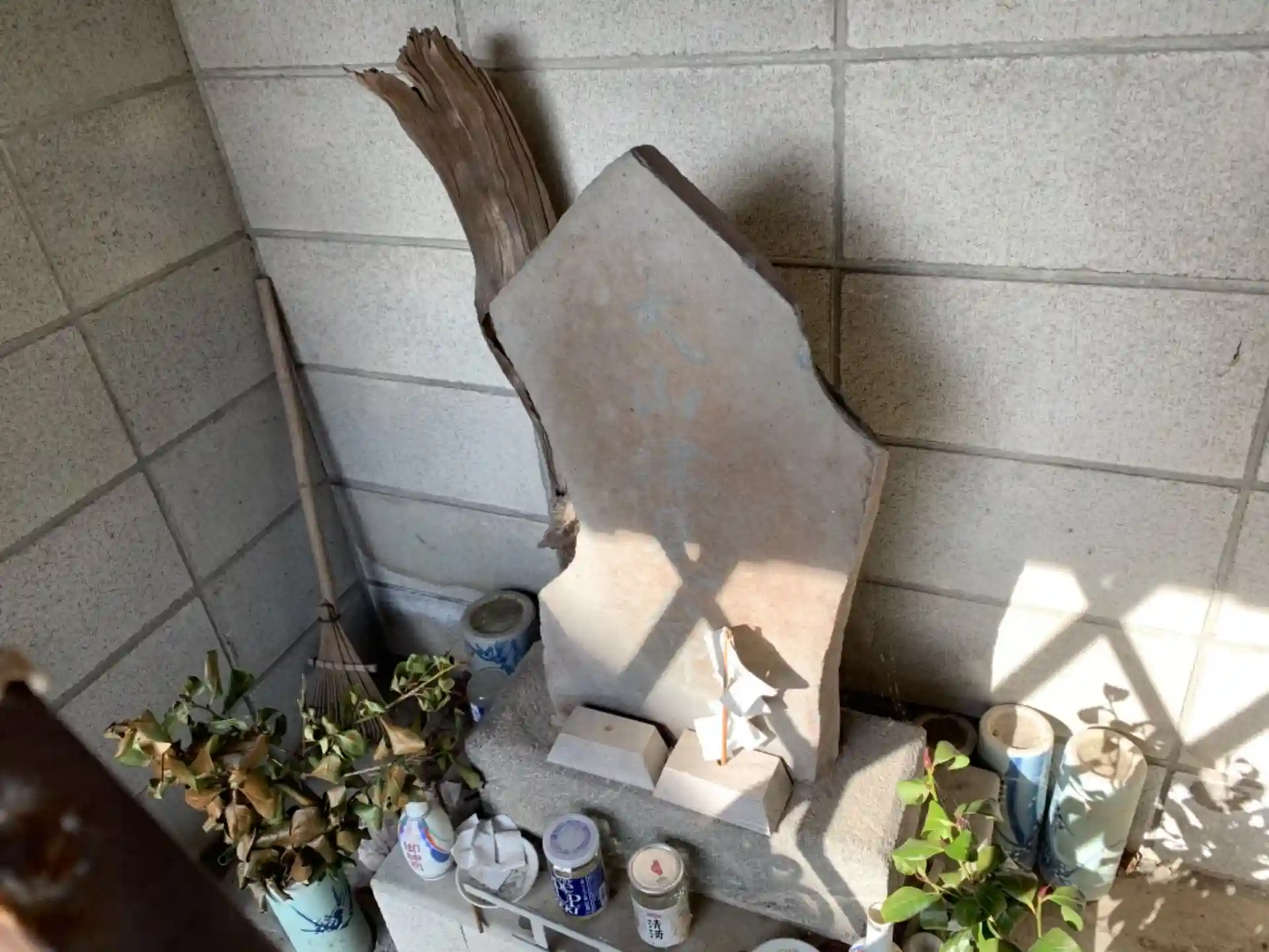石碑を祀る小さな祠。