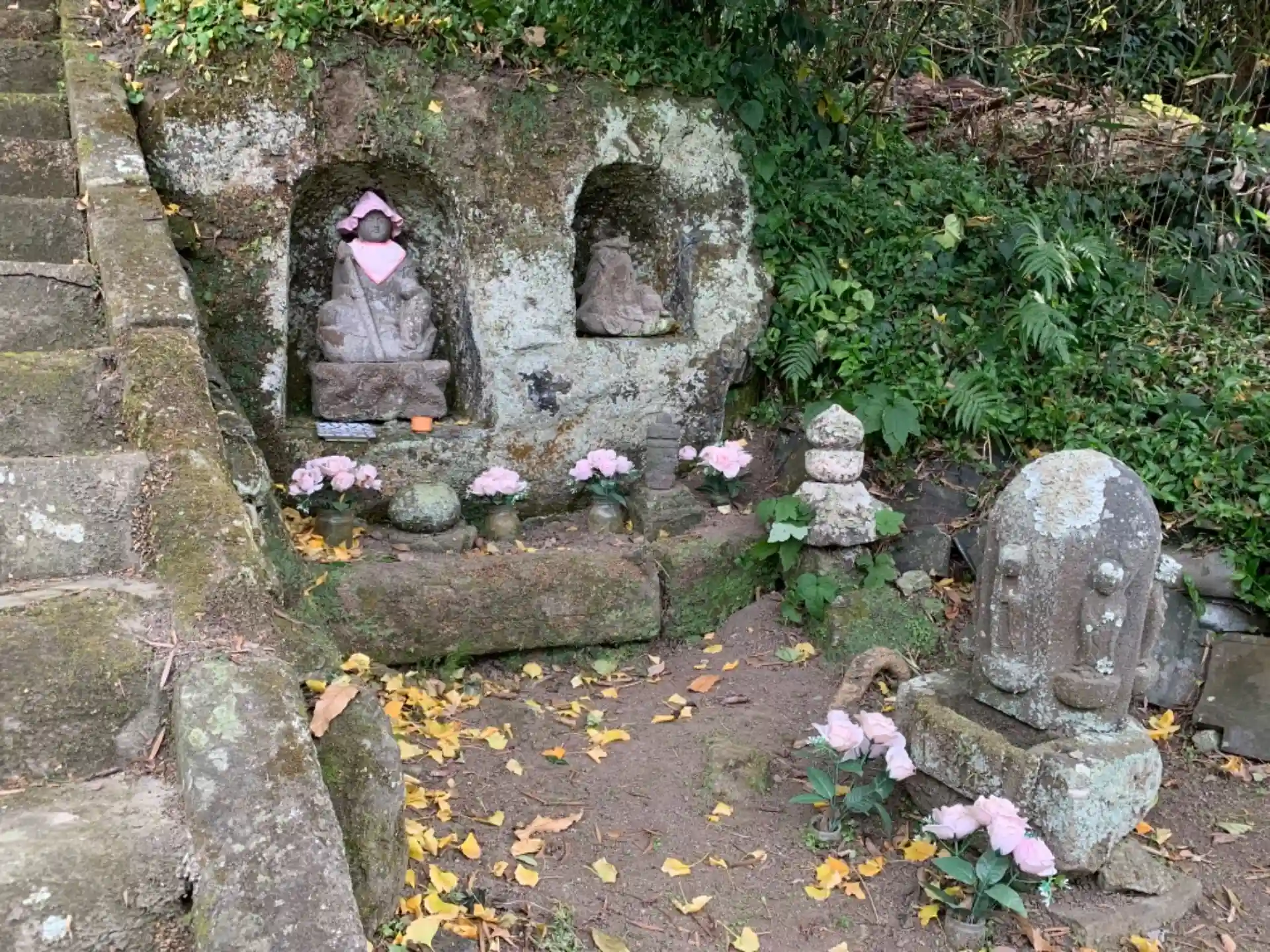 古木の槙があったそうですが、蔦とシダに覆われた切り株がそれに当たると思われます。