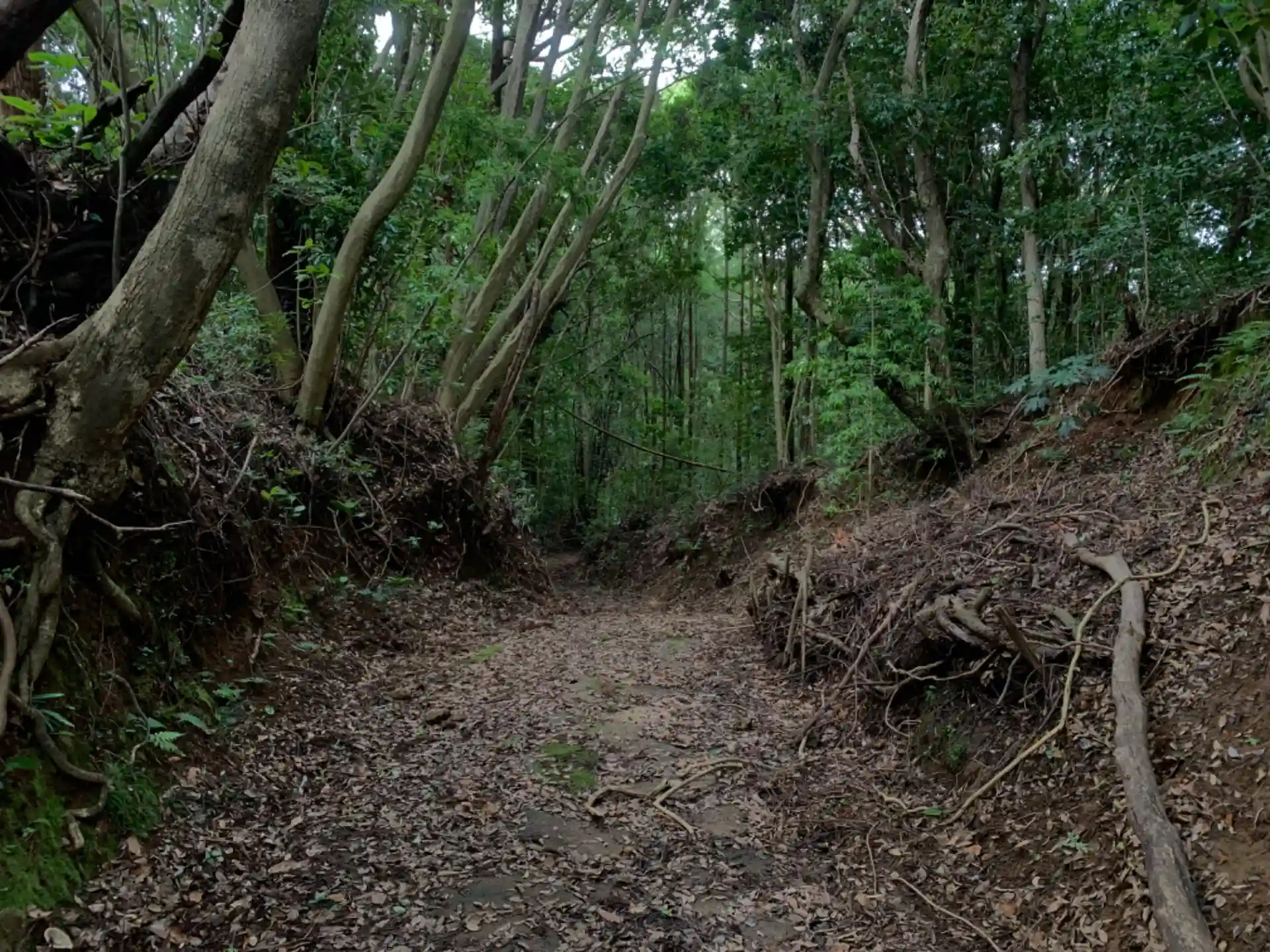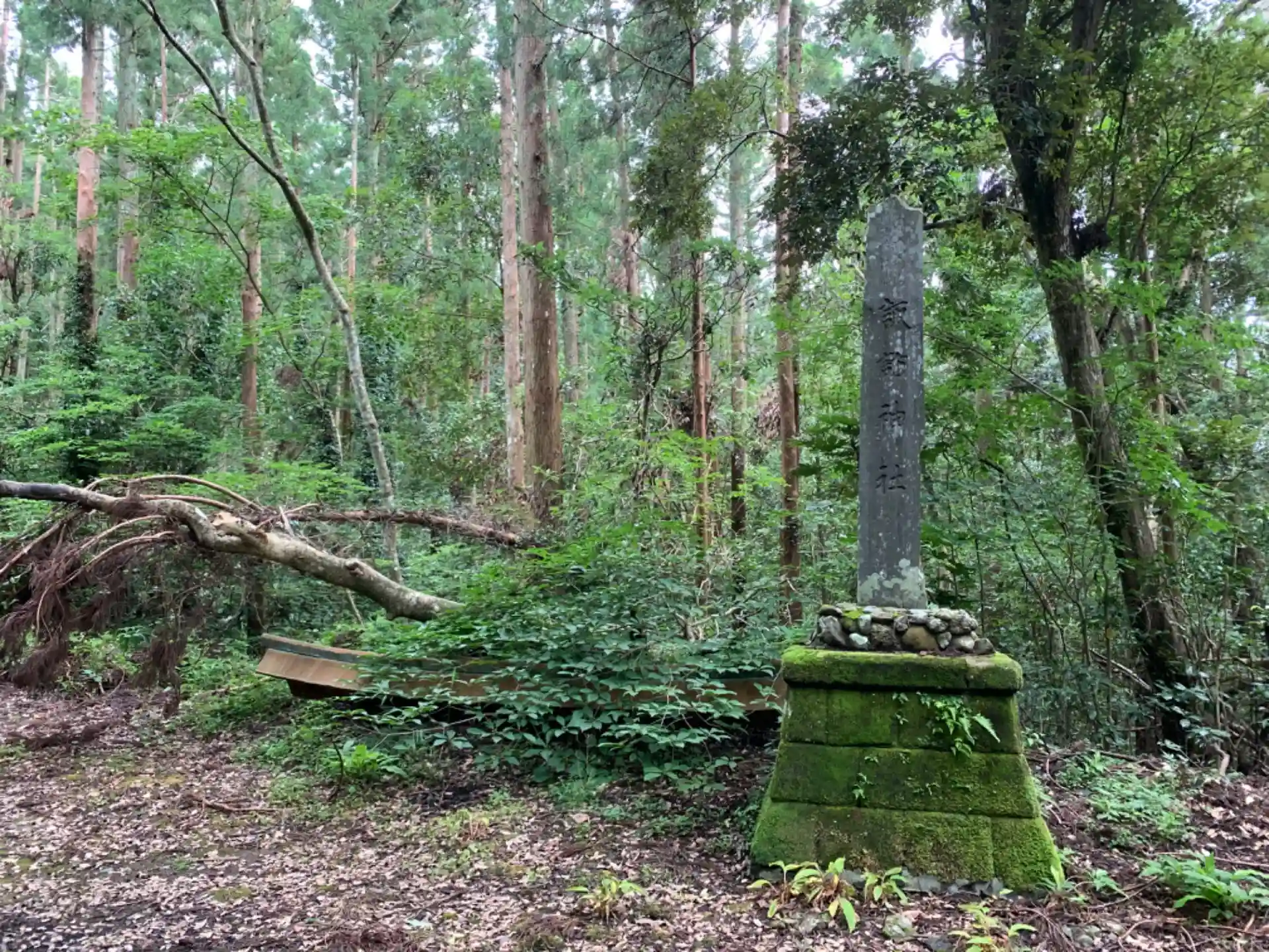 かつての鳥居が低木に覆われていました。