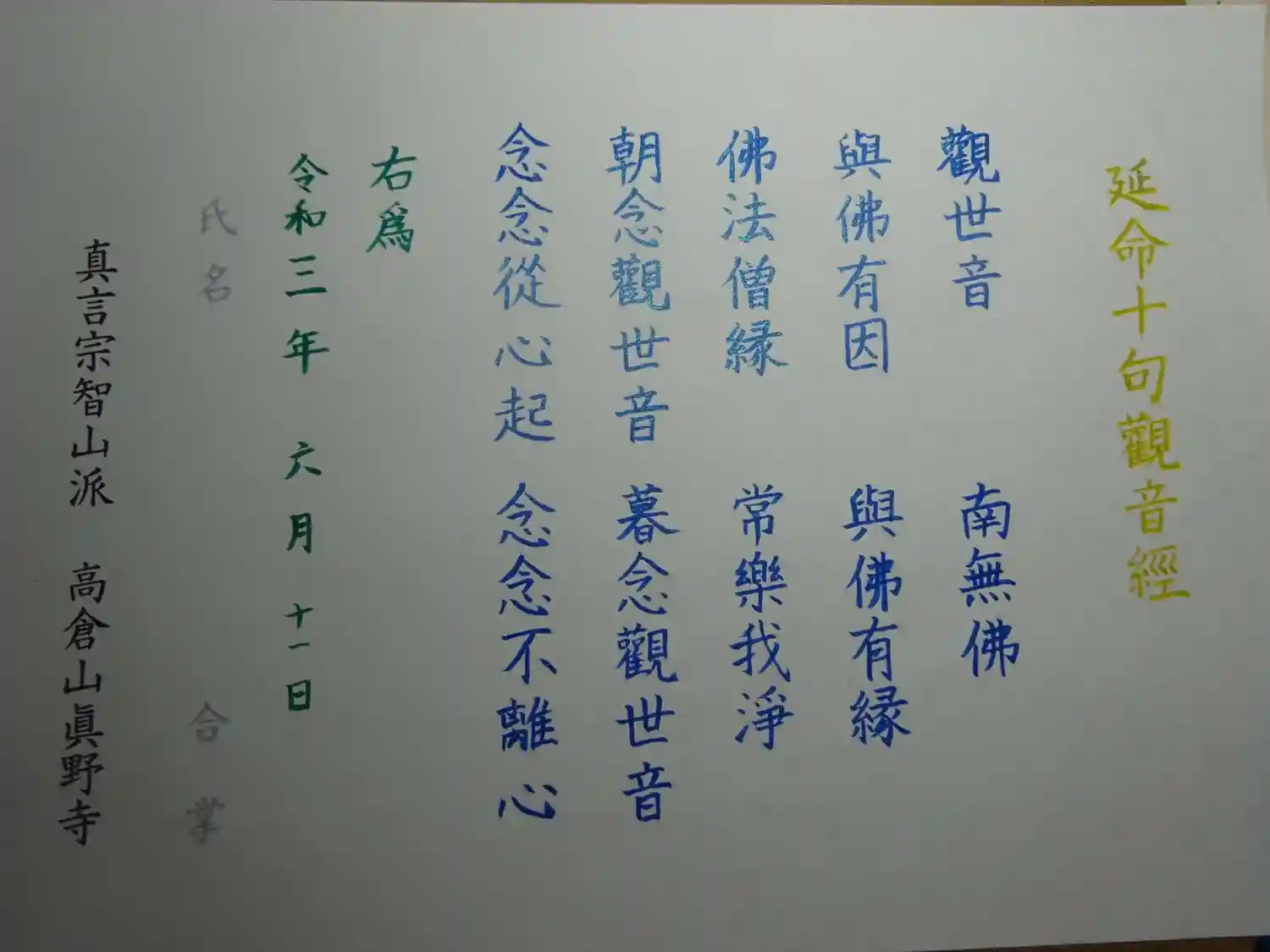 今回納めさせていただいた写経^^