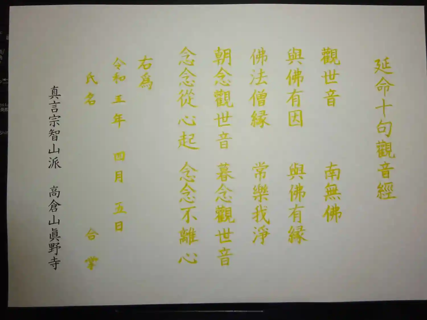 ゴールデンお写経^^