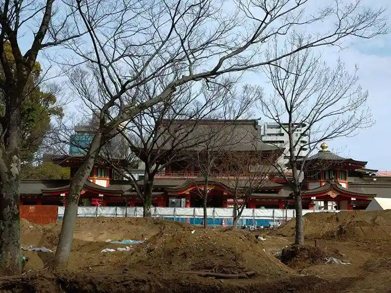 尊星殿です。公園側から。公園も工事中でした。