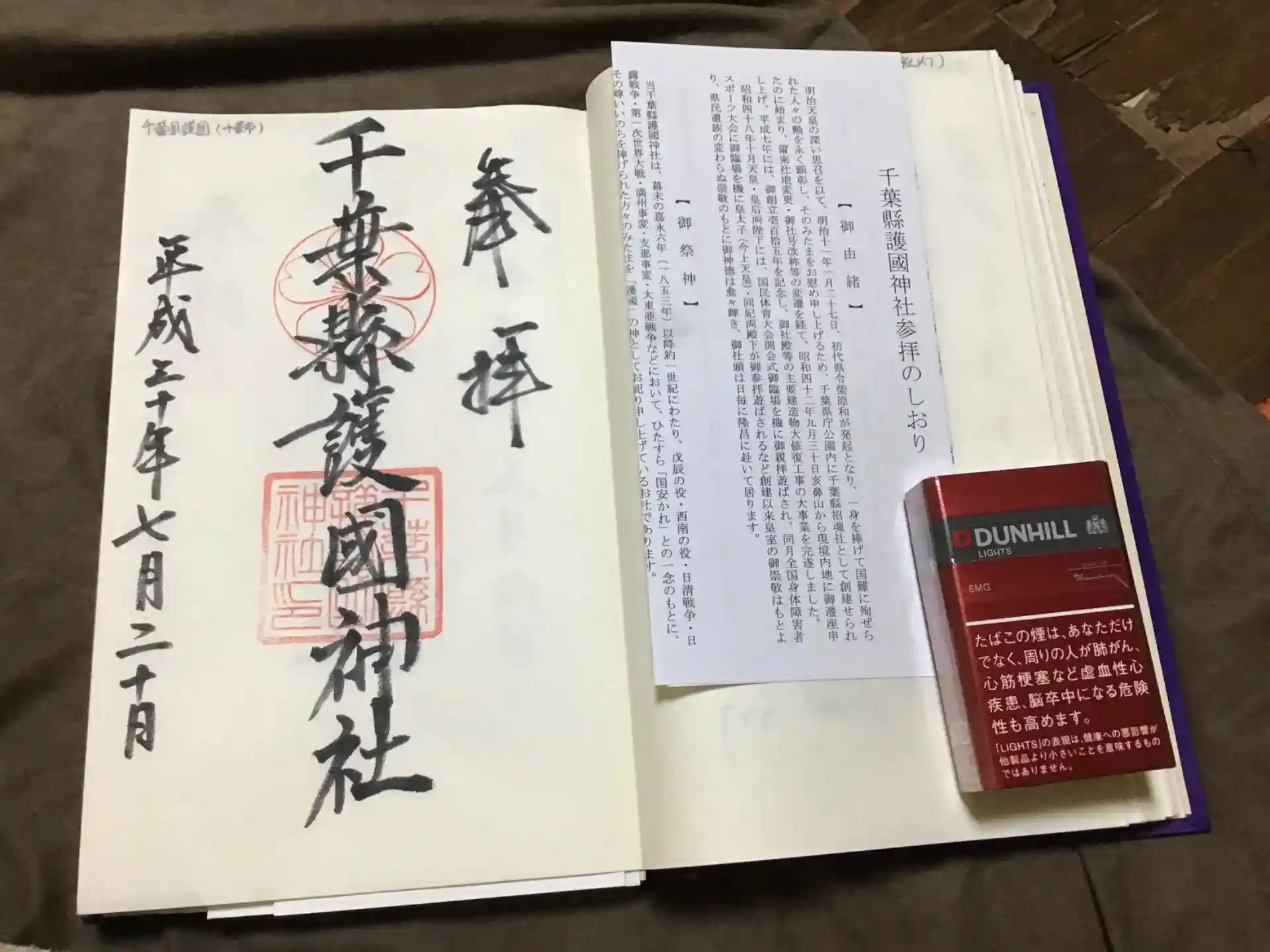 御朱印は、自前の護国神社朱印帳 ノートサイズにいただきました。