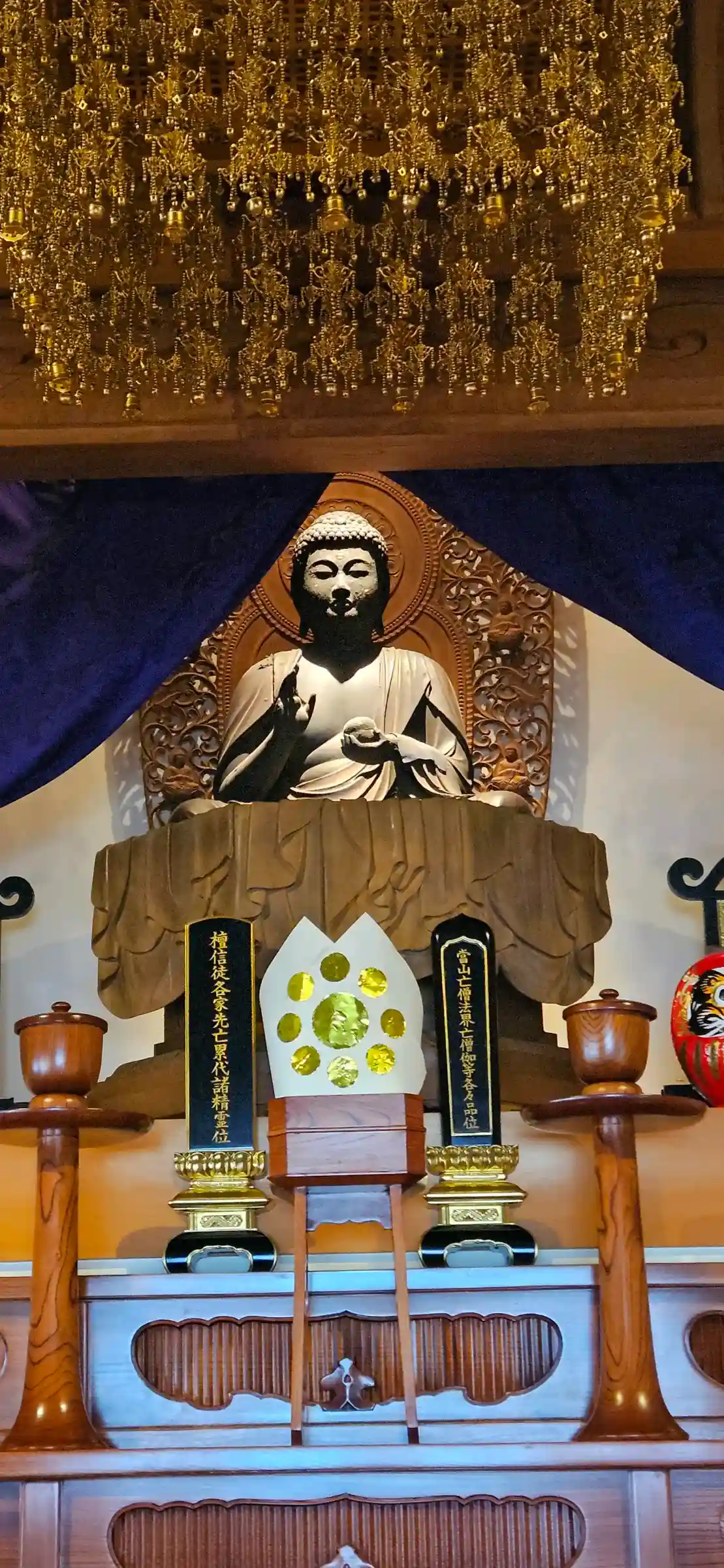 ご住職様に御朱印を対応してもらってる間に『どうぞ本堂へ入ってお参り下さい』と声を掛けて頂き、副住職様と思われる方よりご本尊の話や各仏像などの話を聞かせて頂きました。 御本尊は、現在参拝の方に常に見て頂けるようにしたと話されてました。 親切な御対応ありがとうございました。