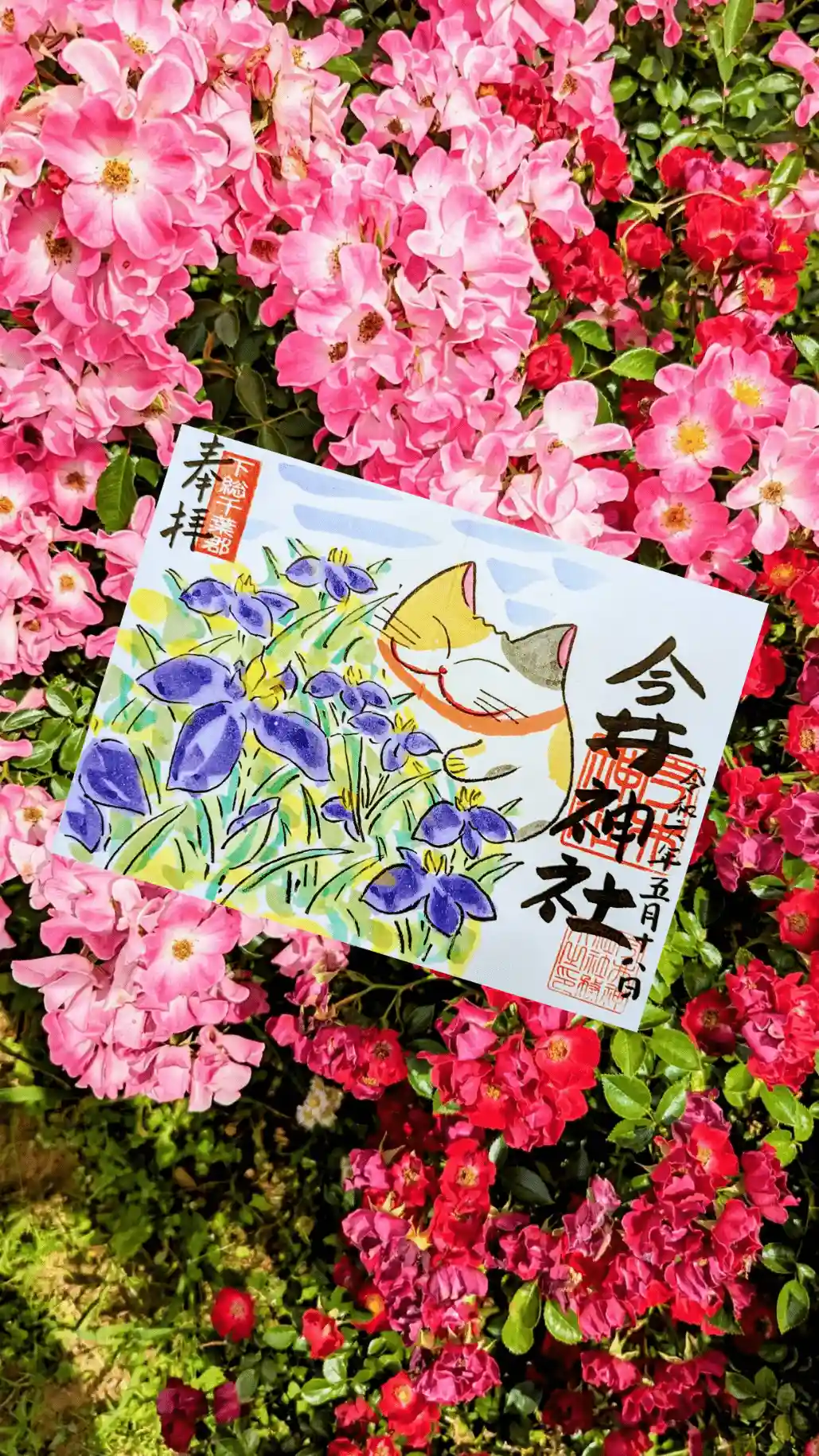 ゴン太君と季節の花の菖蒲で描いていただきました😺