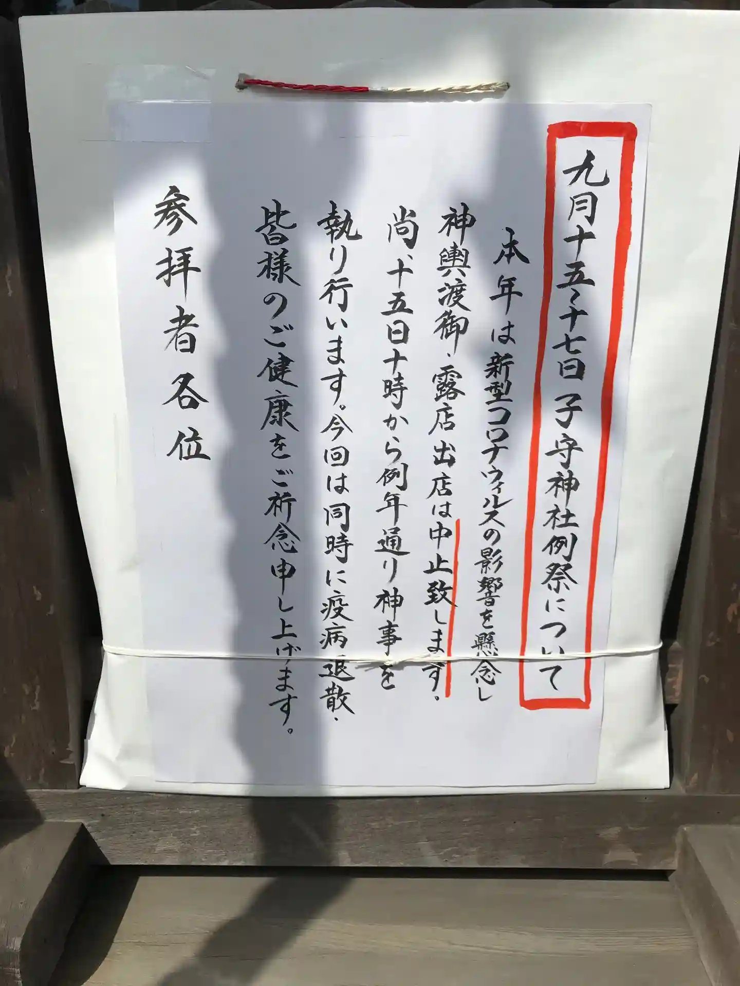 今年のお祭りは神輿と露店は中止