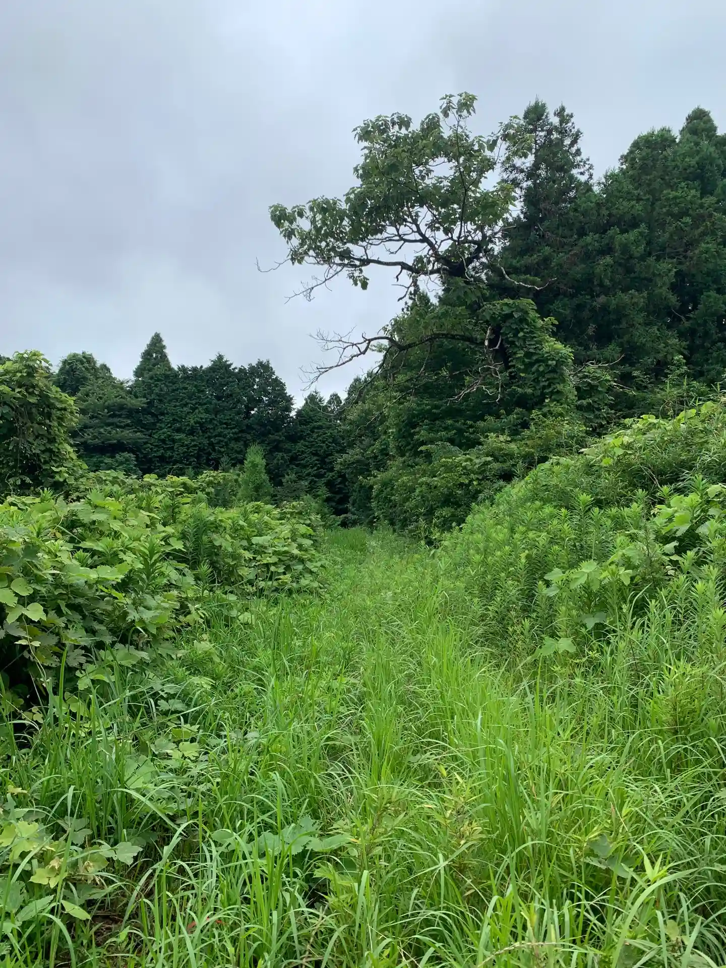 なお、ここから南側に降りていく道は一部が崩落して藪に覆われていたので通るのは難しそうでした。古道かもしれないだけに残念でした。