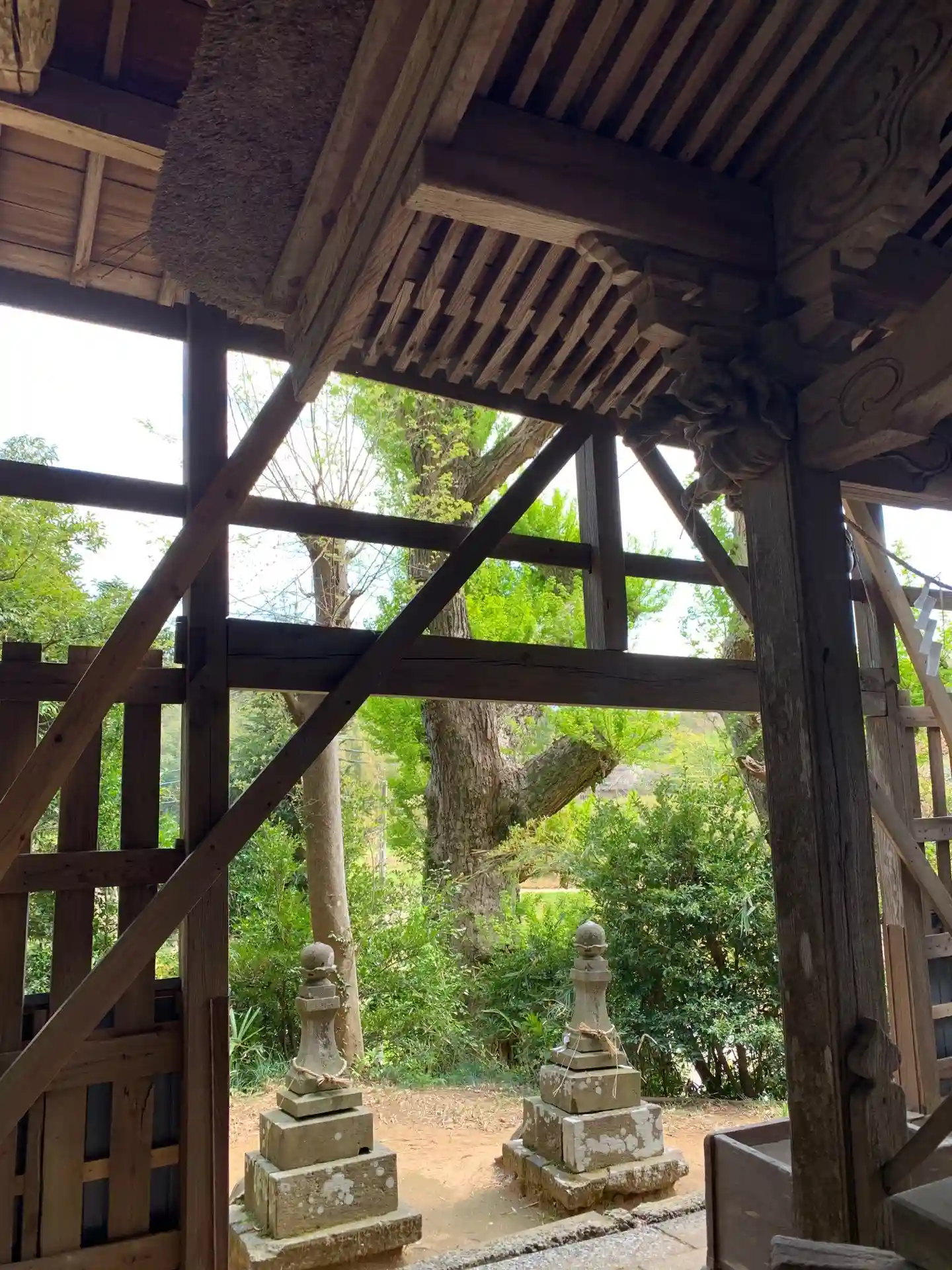茅葺き神社は大抵トタンを載せていますが、ここは社殿を覆う建物を増設しています。