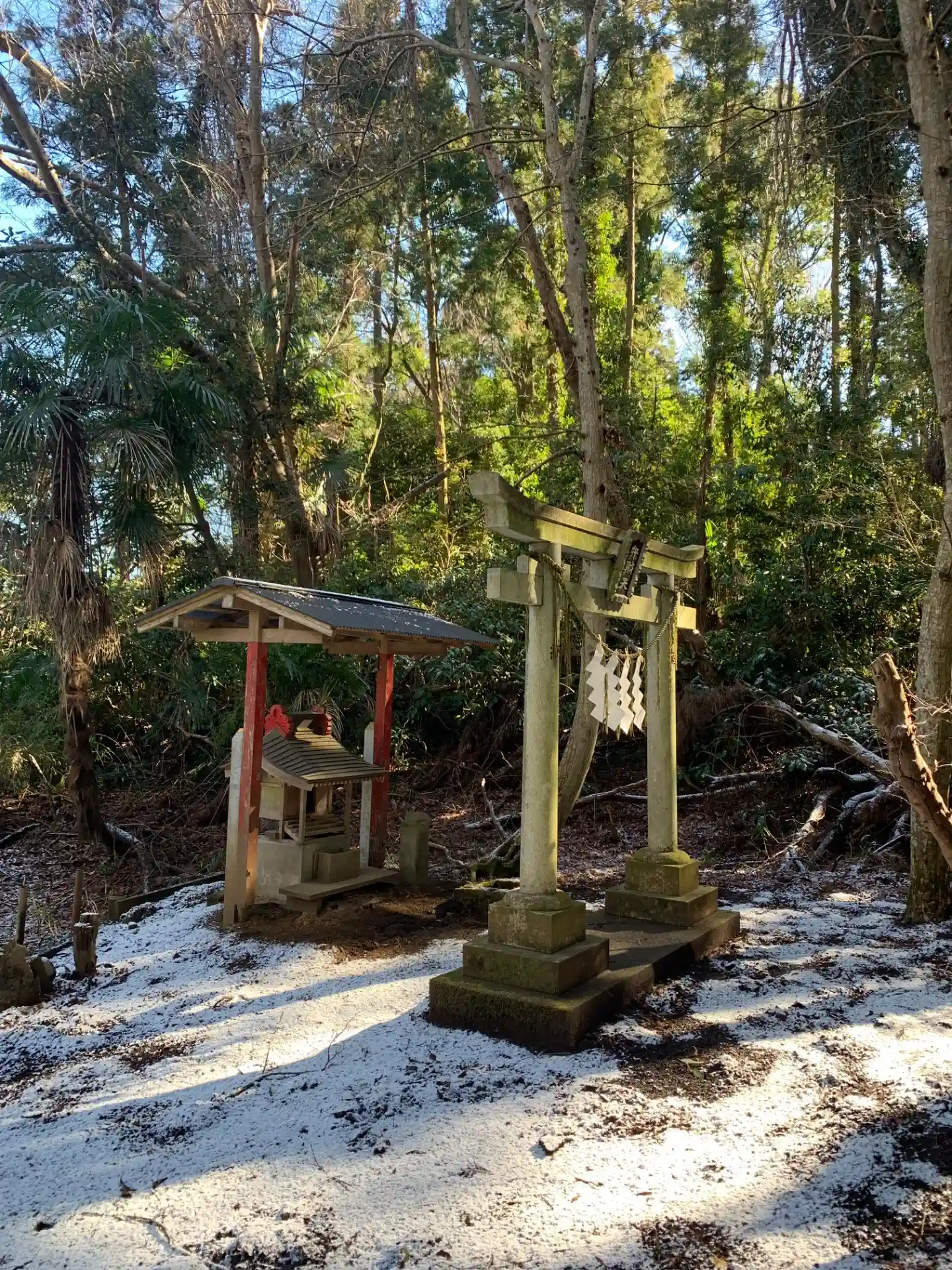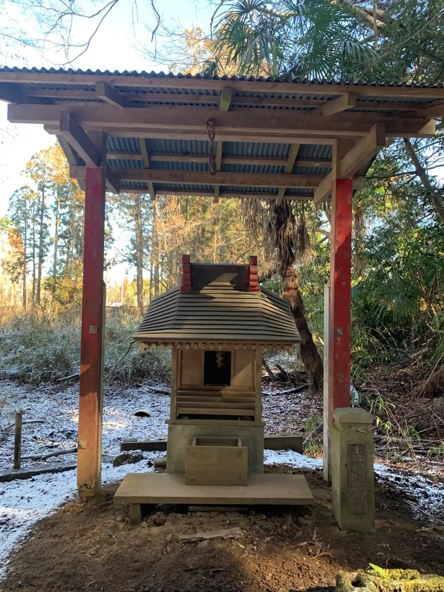 細い道にある木の祠。