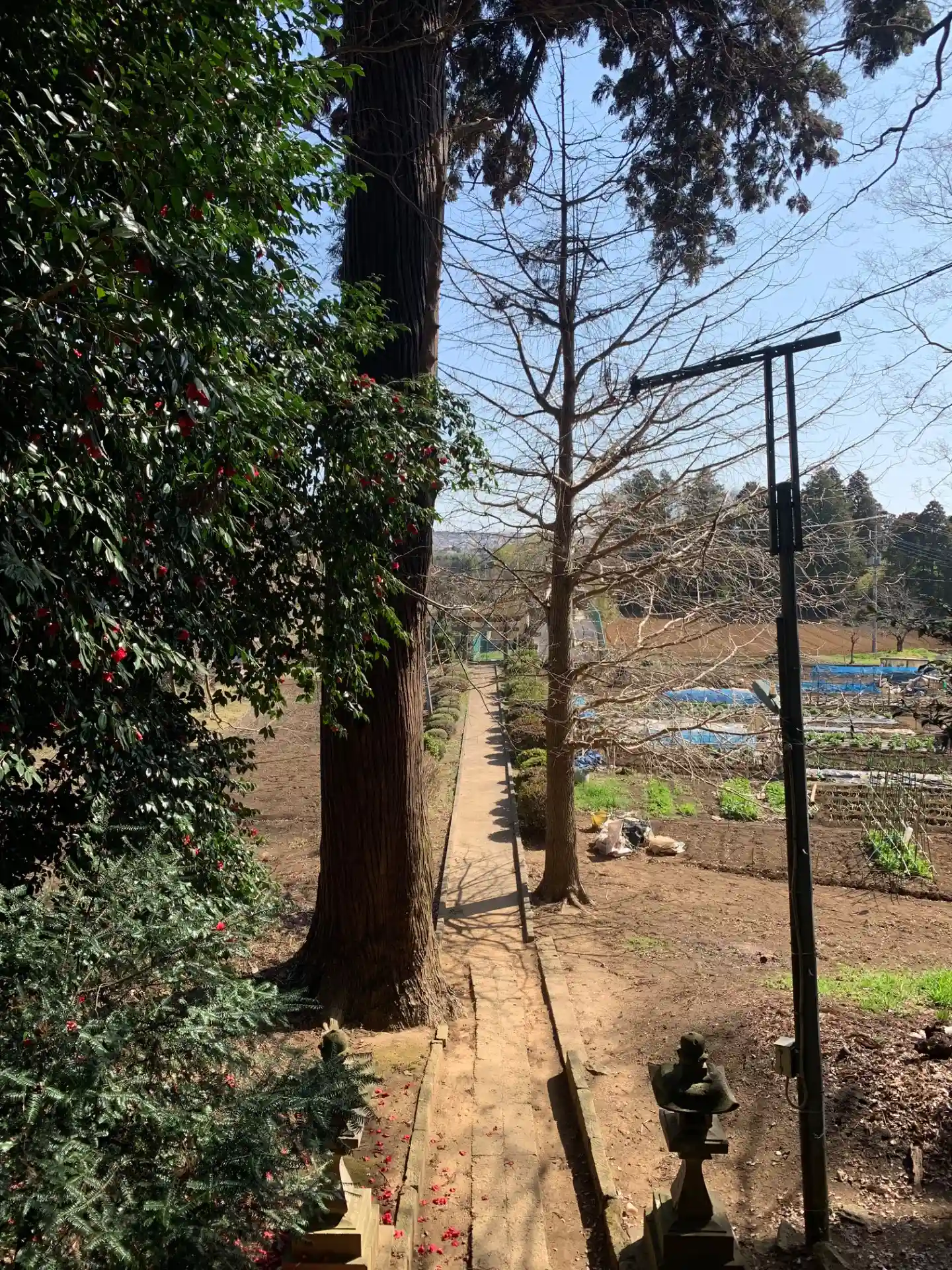 杉の巨木に遠慮するように建つ社殿がいい味出しています。本殿を覗き込むと地紋彫りの向拝柱がチラッと見えたので、優れた彫刻が眠っているかもしれません。