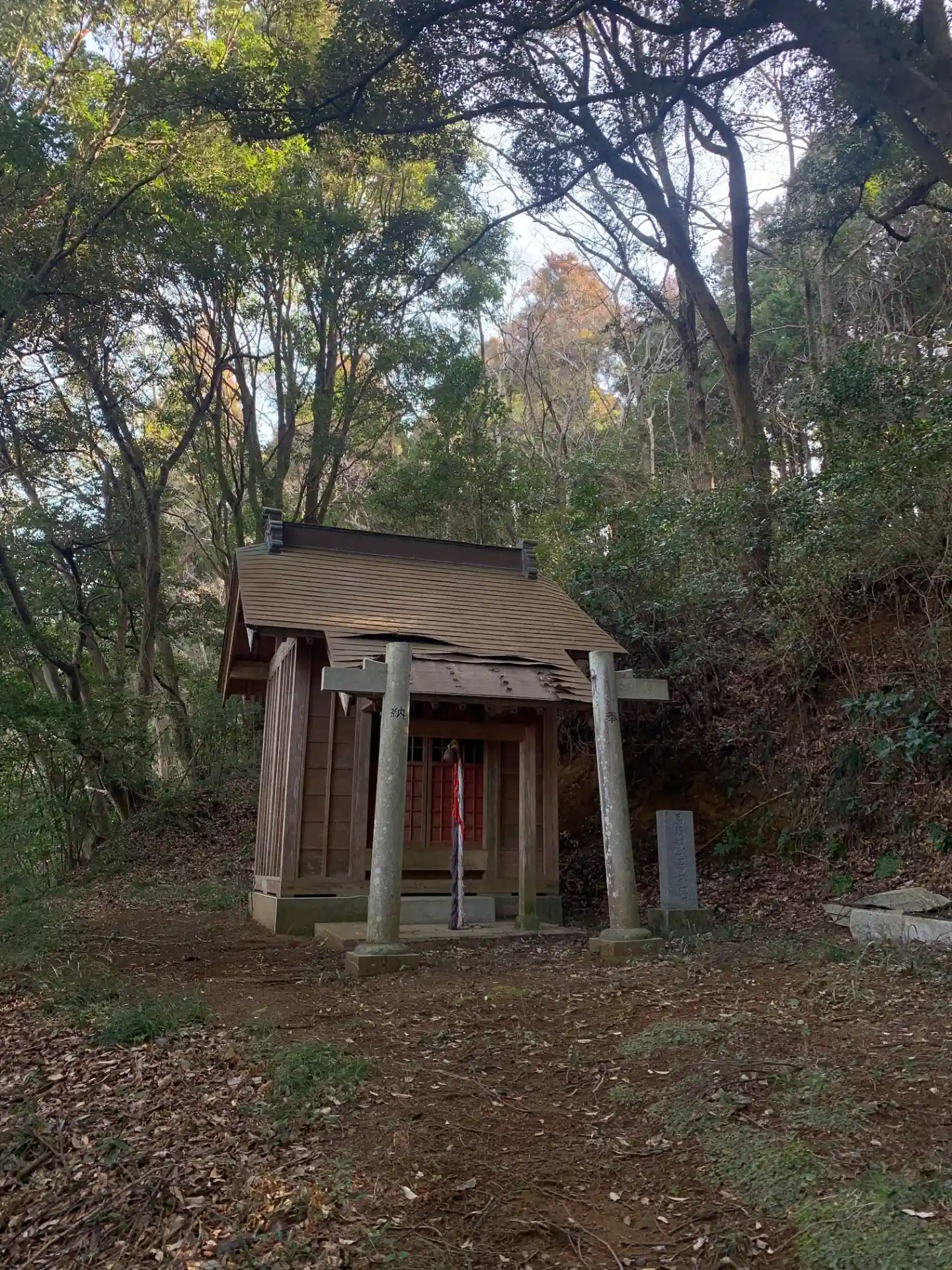 熊野神社の向かいにある神社。破損した鳥居が痛々しいです。