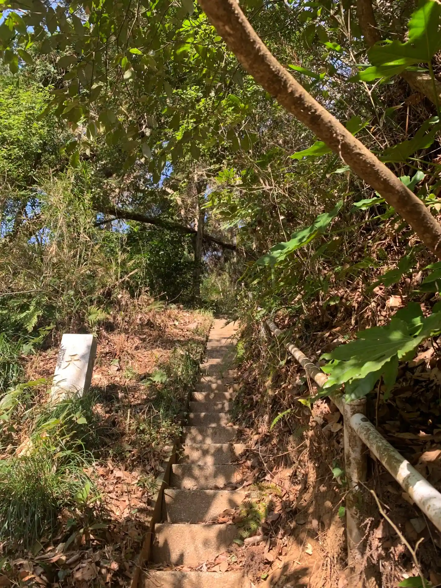 水辺の郷公園沿いの道に埋もれかけた階段があり、100段以上登ると小さなお社があります。住宅地の近くだからか多くの合格祈願絵馬が掛かっていました。