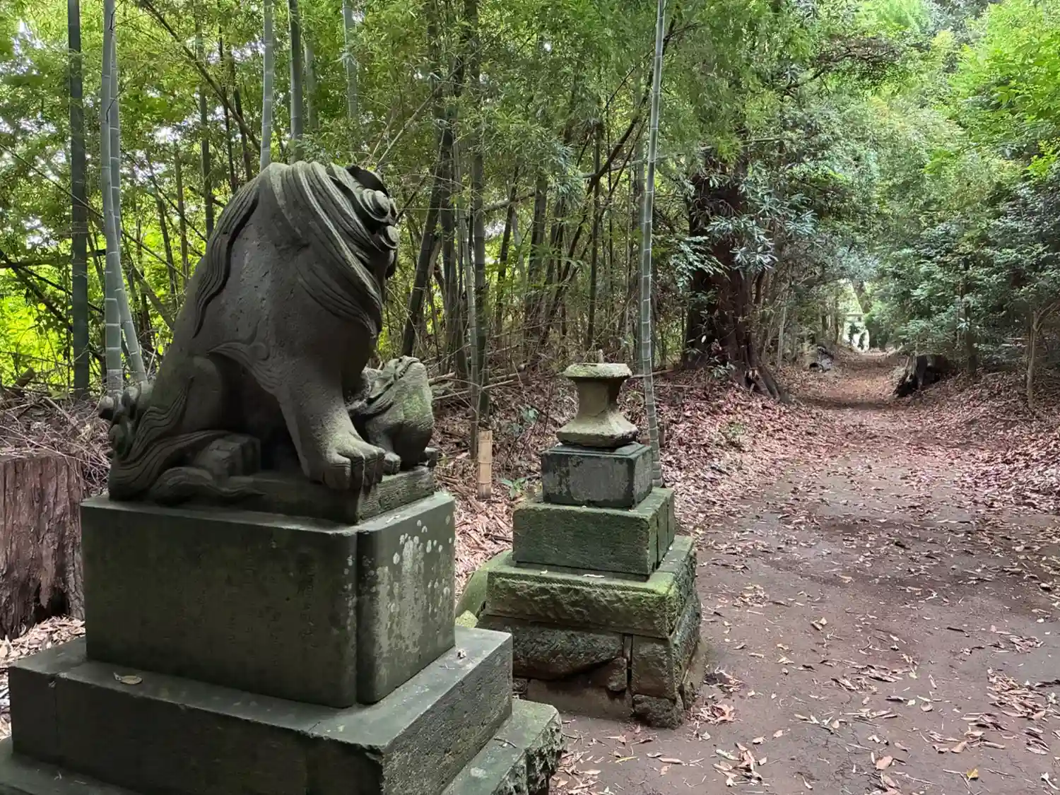 萩台村の鎮守。台地のへりに向かう平坦な参道は下総によく見られます。立派な狛犬は検見川の小川忠三のも…