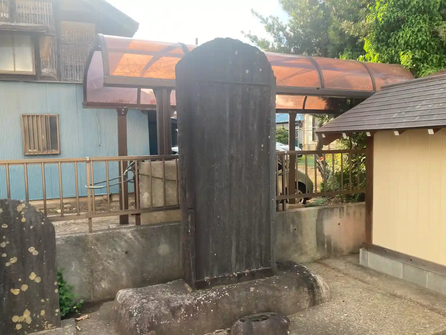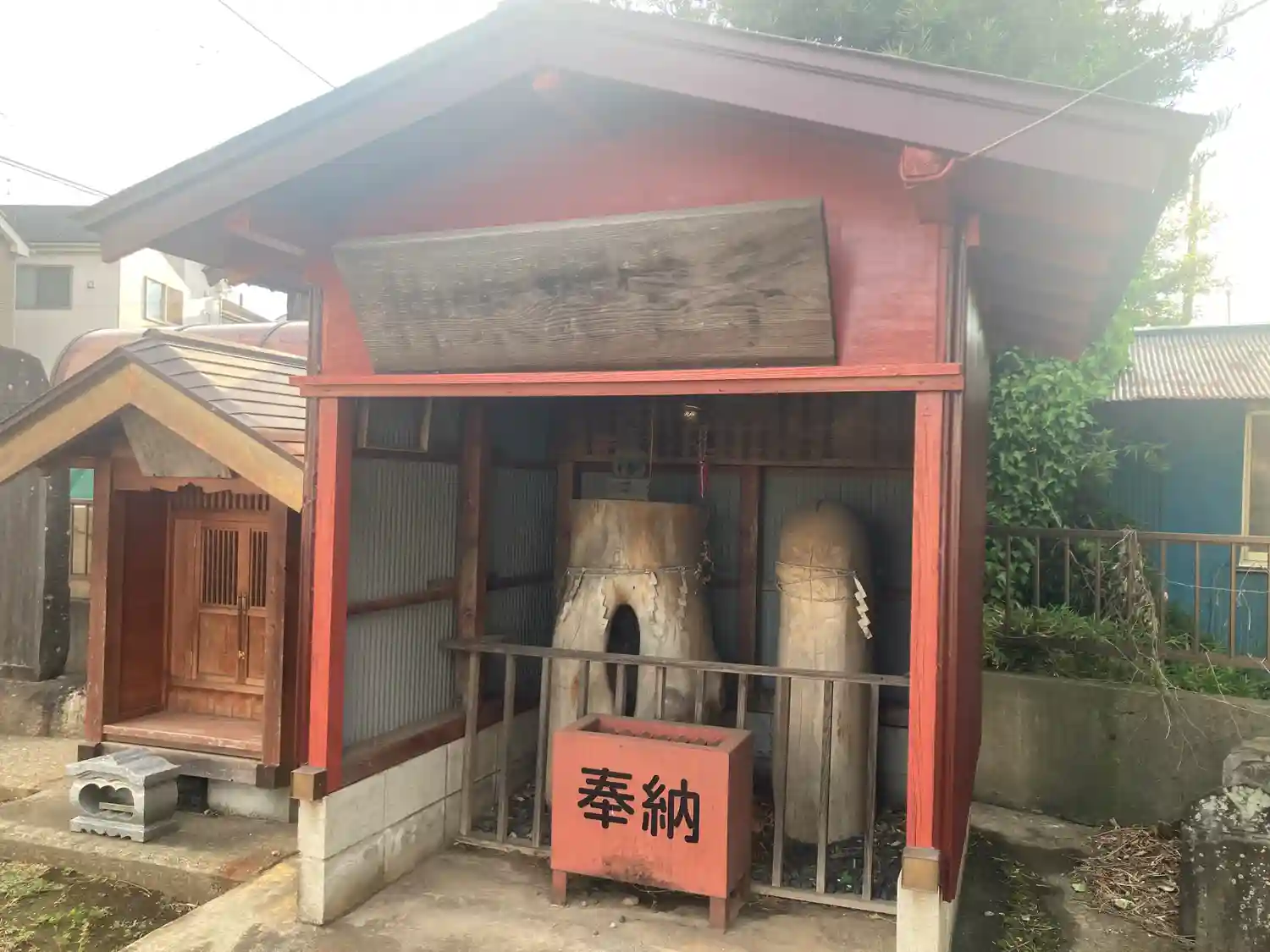 住宅地にあるお寺。境内には子宝祈願の大きな木製品があります。平成に作られたそう。