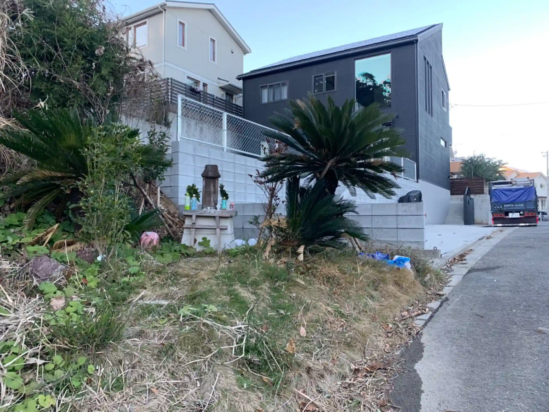宅地のはずれにある祠。祠の自体は江戸時代のものですが連綿と信仰が受け継がれ今の形になっています。