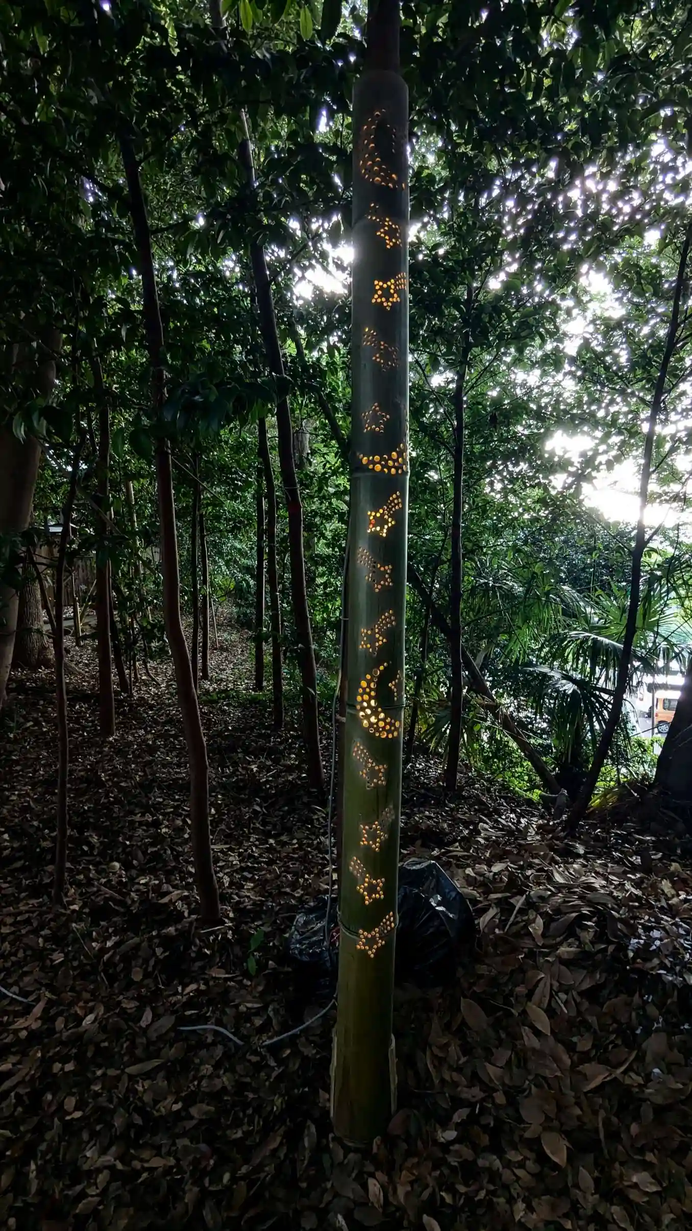 こちらの竹灯りは穴の部分にビー玉が埋め込まれてライトアップされてて綺麗でした😊