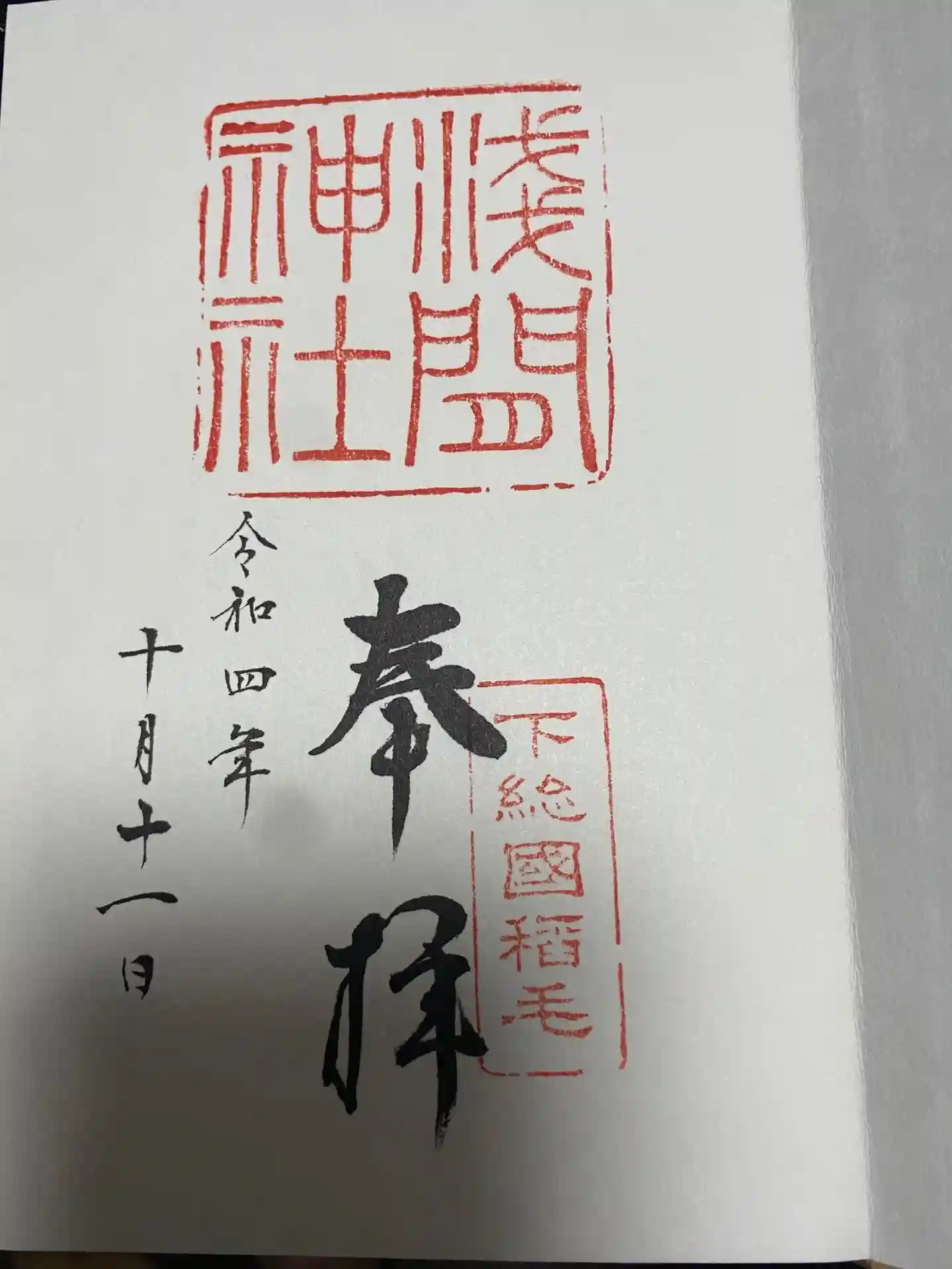 御朱印帳への書入れにて拝受いたしました。
