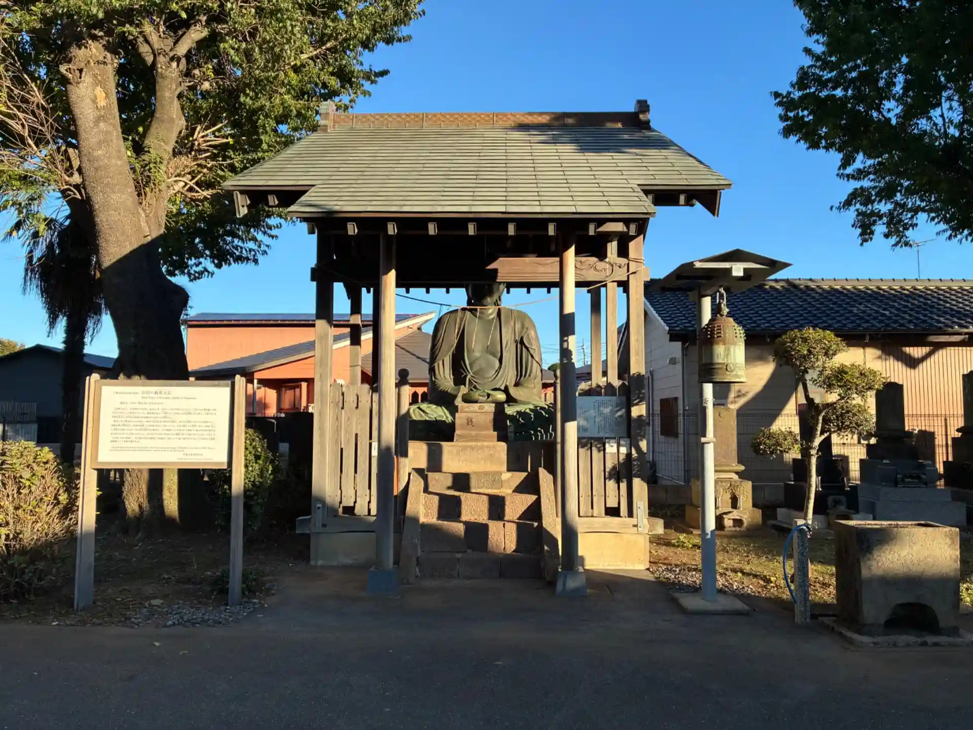 徳川将軍の鷹狩りのための道である御成街道沿いにあるお堂。江戸時代にまっすぐな道を造成できるくらいこの辺は何もない場所で、それゆえに江戸時代になると新田開発が進みました。ここの北部にある短冊状の区割りは当時の開拓手法をよく残しています。