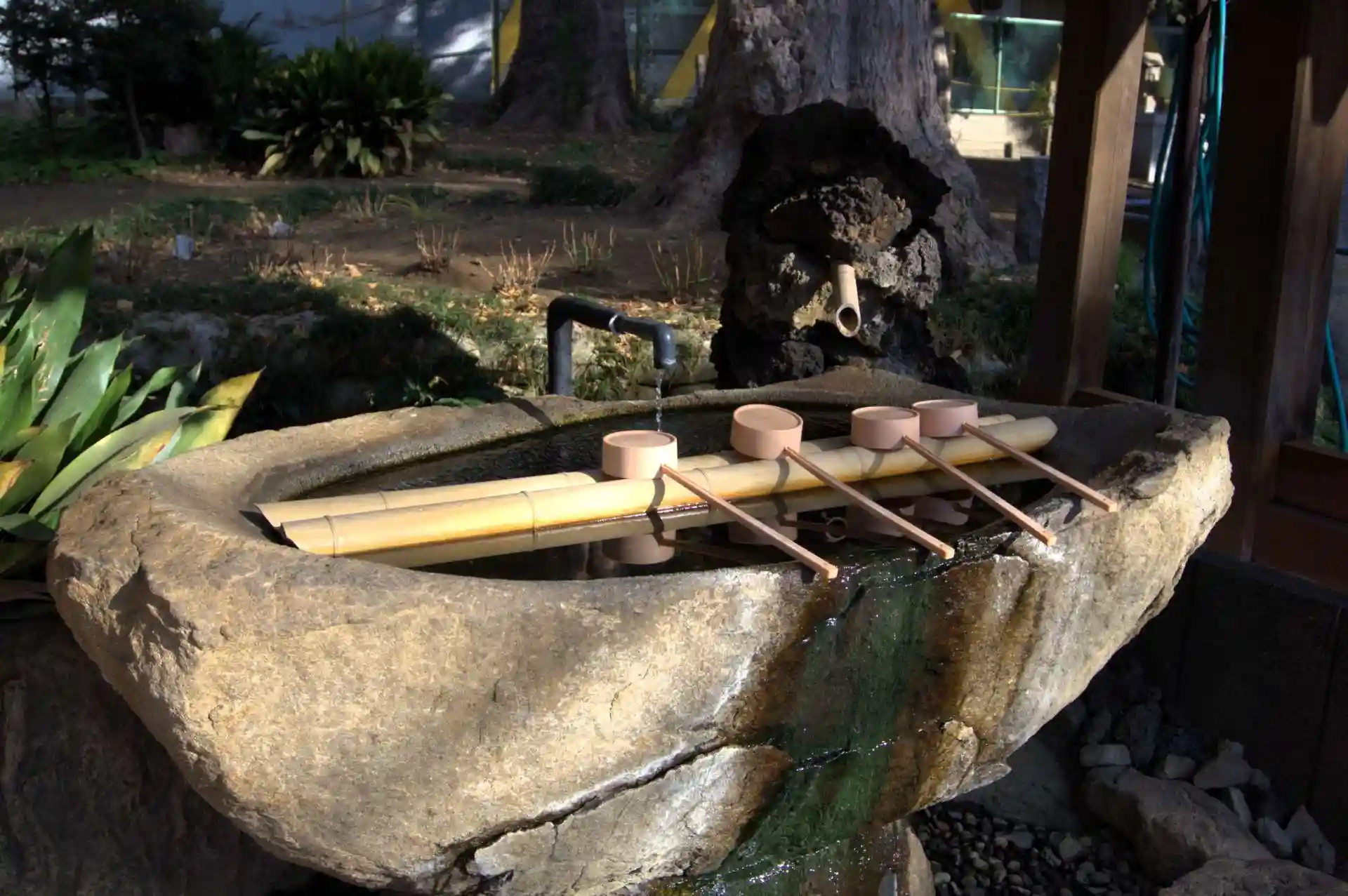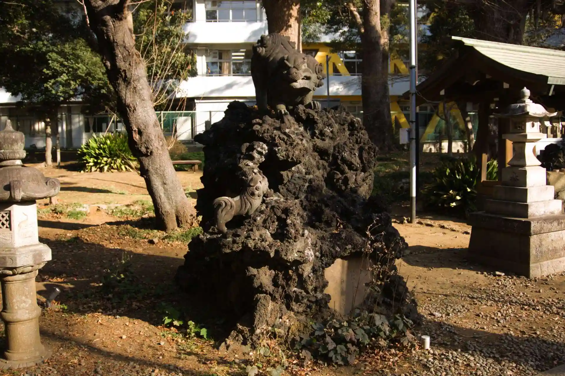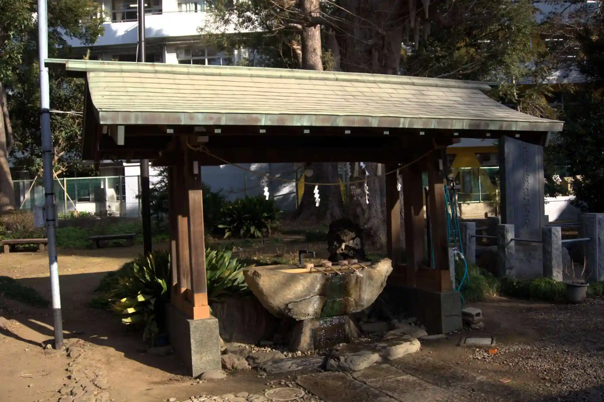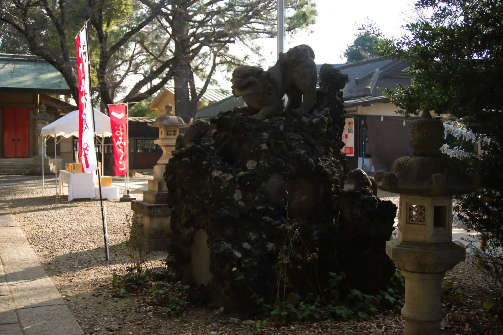手水舎前の狛犬さんが大きく立派なので必見です。