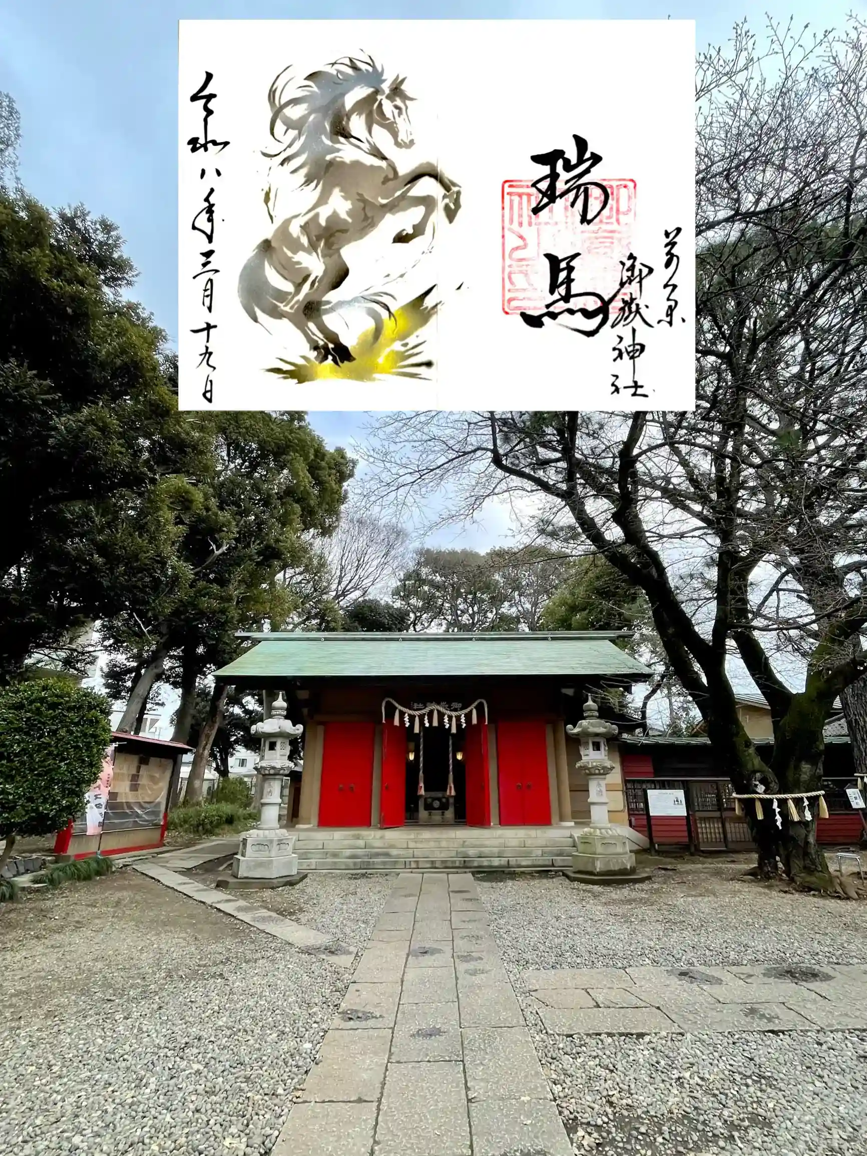 お詣りして社務所へ行って御朱印を拝受。お書き入れは3種類。お願いしたのは見開きの干支朱印"瑞馬"(pic1)。可愛らしいのもいいですがこーゆーカッコいいのに上がりましたっ。