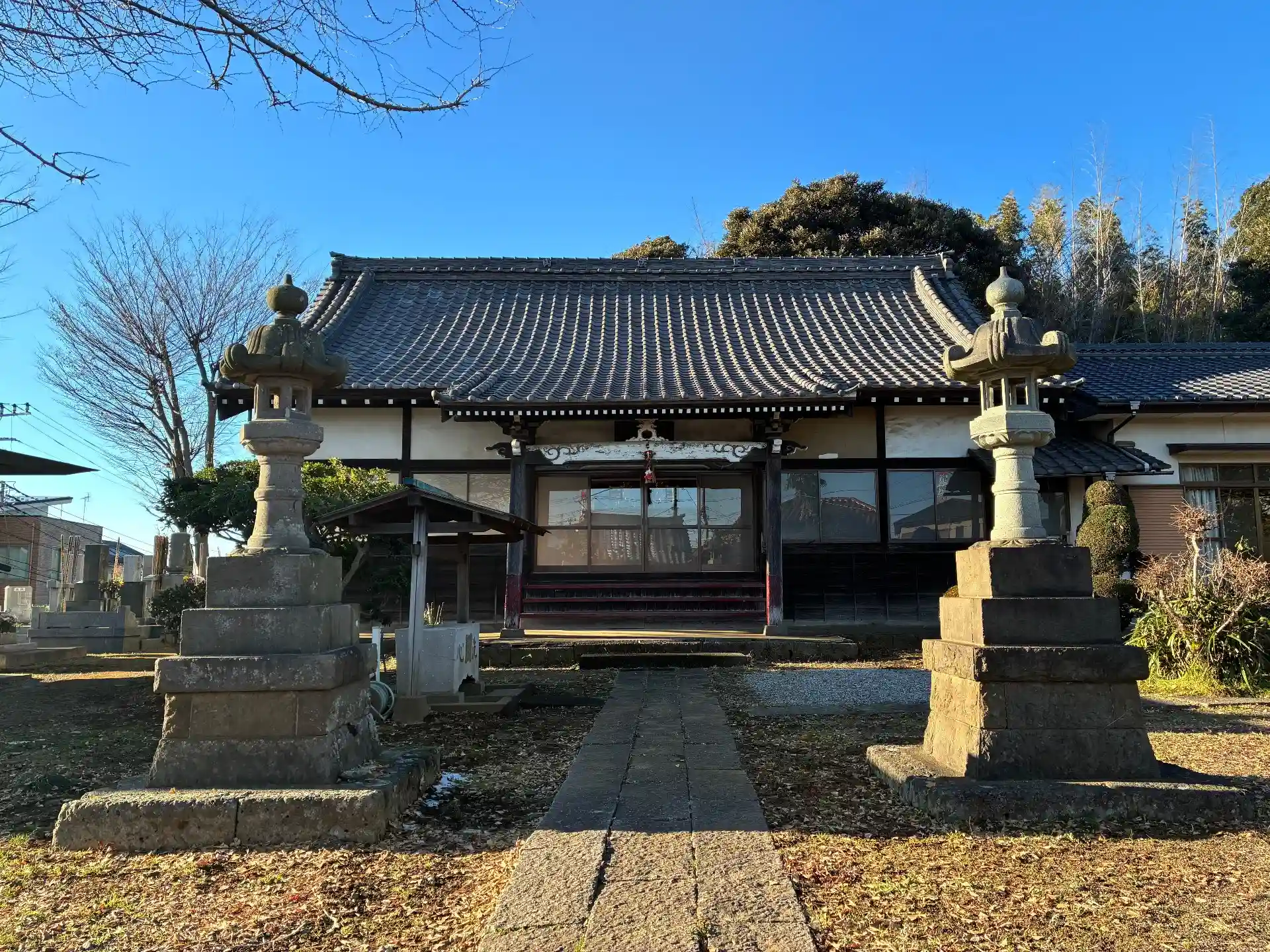 後貝塚村の菩提寺。大きなイチョウの木が聳えています。