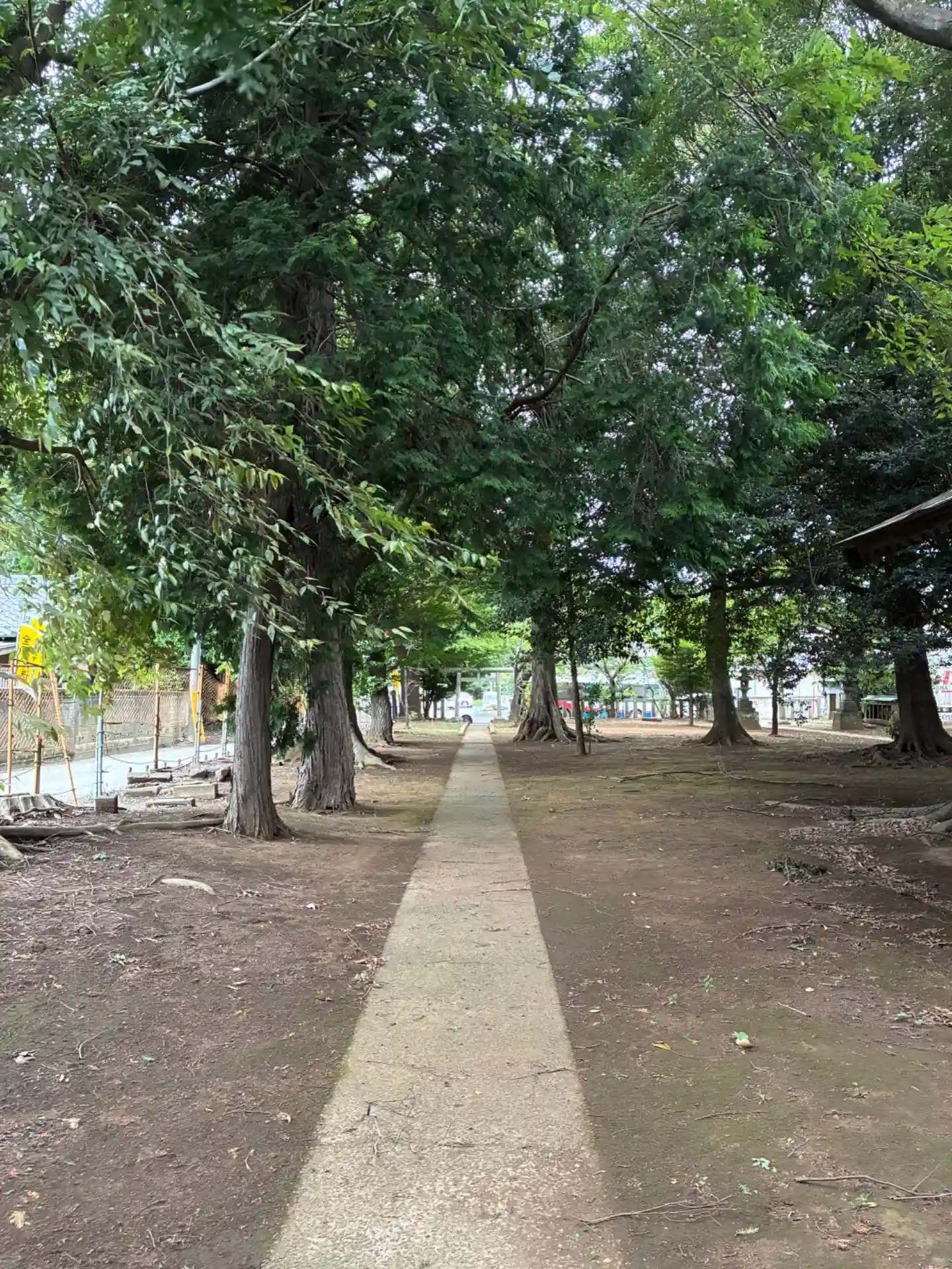 神保新田の鎮守。広々とした境内に歴史のありそうな朱塗りの褪せた社殿が建っています。