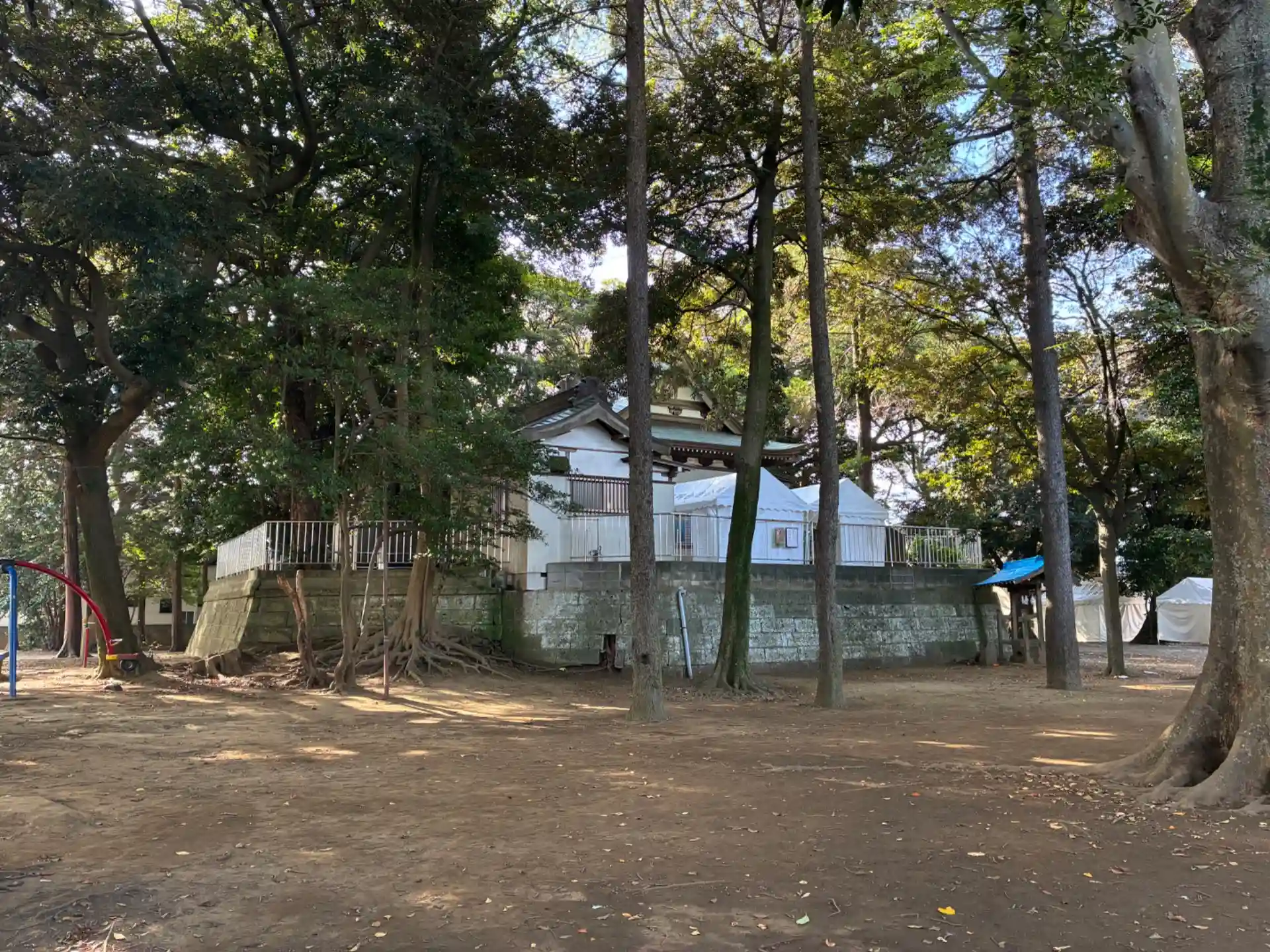 成田街道沿いにある神社。参道は北向きですが社殿は東向きです。広い公園を有しています。
