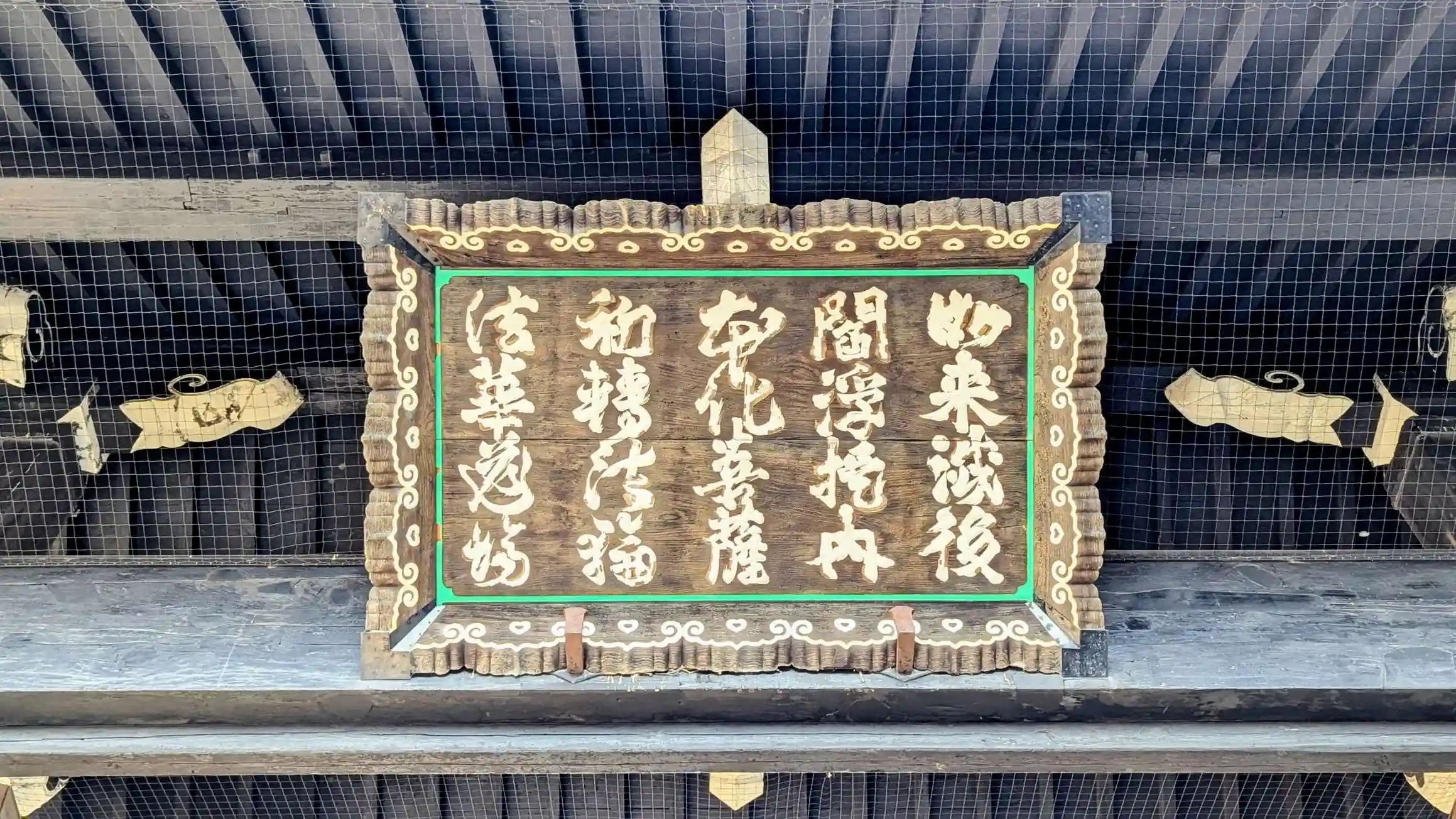 静岡県掛川の第3代藩主、太田資順(おおたすけのぶ)公による『如来滅後 閻浮提内 本化菩薩 初転法輪 法華道場』の扁額があり、如来滅後の末法において、本化の菩薩が初めて法華経を説かれた道場であると掲げています。