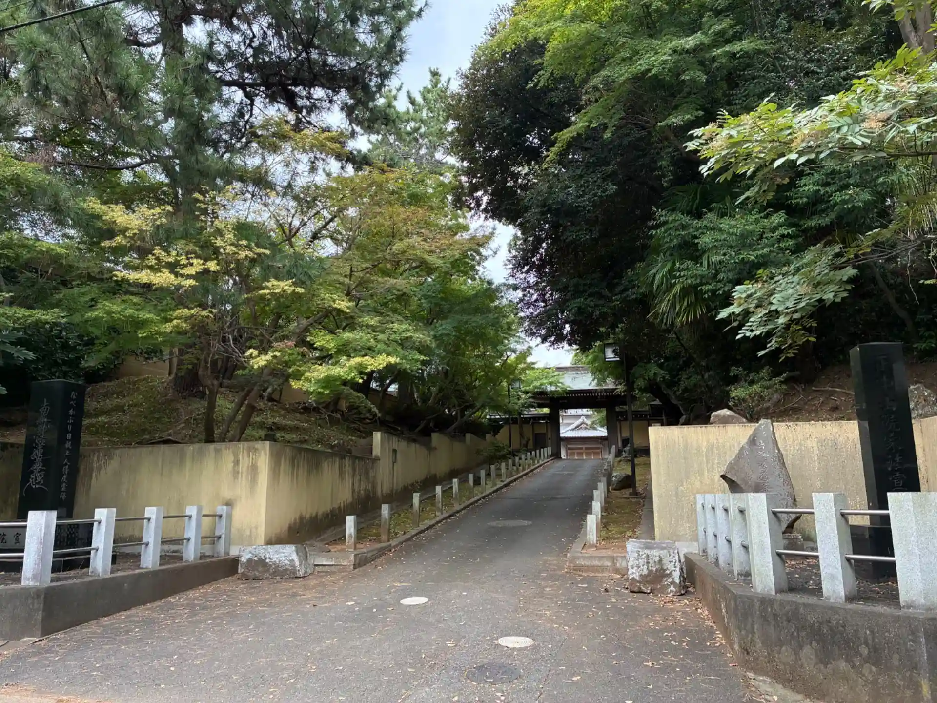 法華経寺のすぐ隣にあるお寺。千葉氏に関係あるのか2種の家紋がみられます。境内の奥には稲荷社がありました。