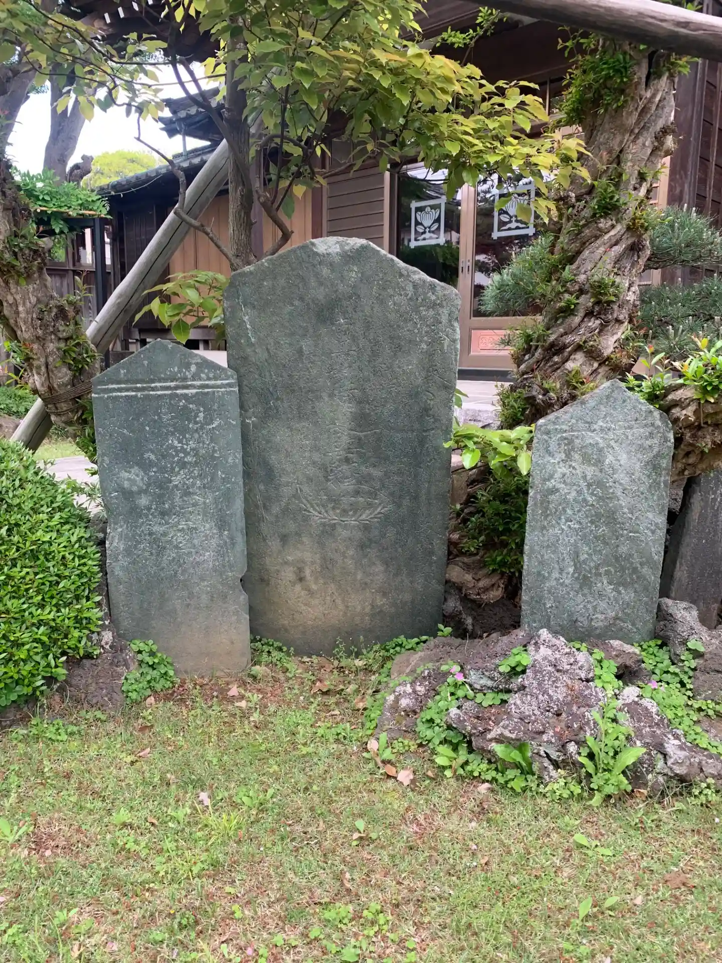 法華経寺参道にいくつかあるお寺のひとつ。境内に板碑があります。