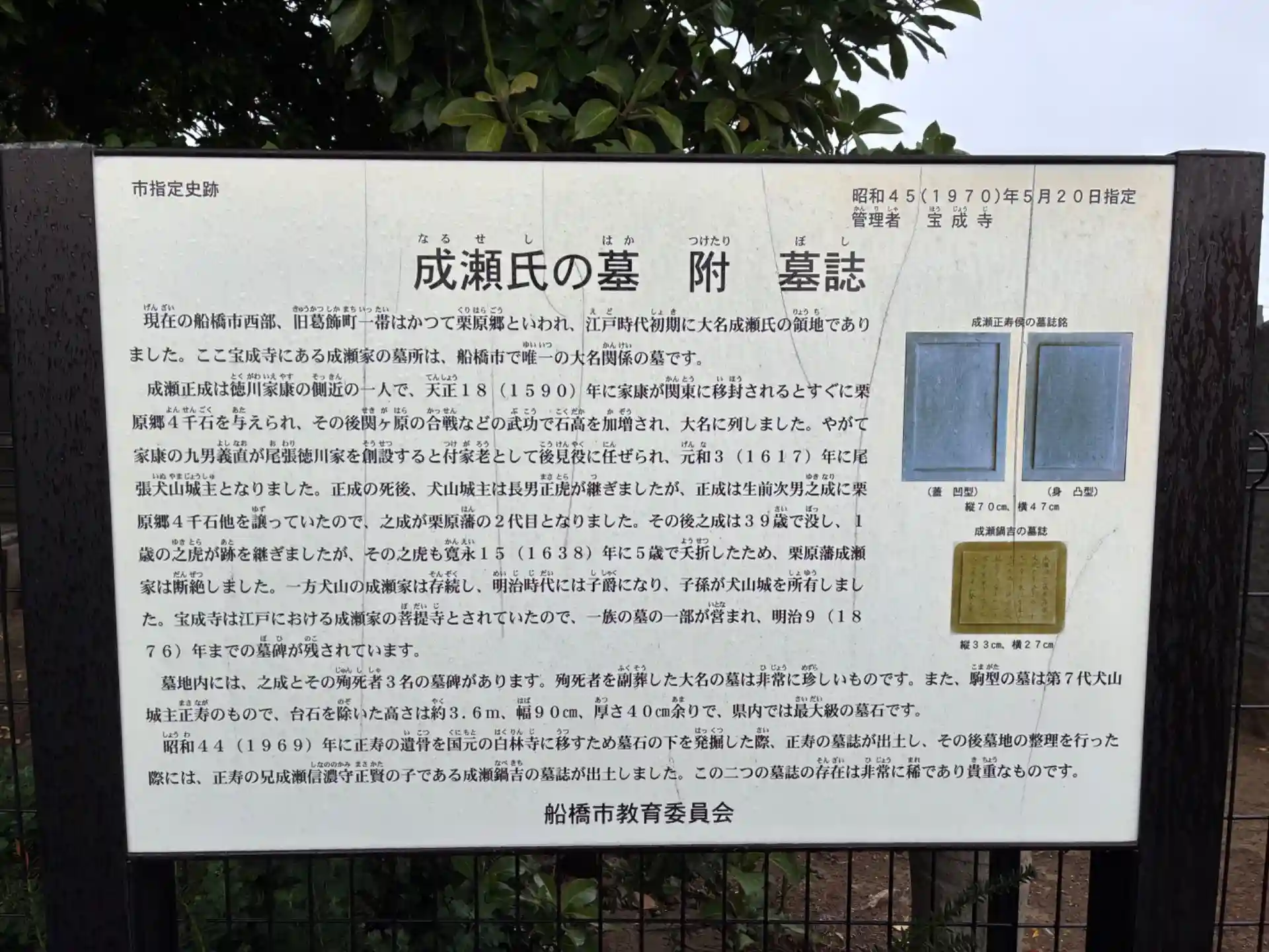 徳川家康の側近で付近に4000石の所領を与えられた成瀬氏の菩提寺。墓域には立派な墓が建っています。