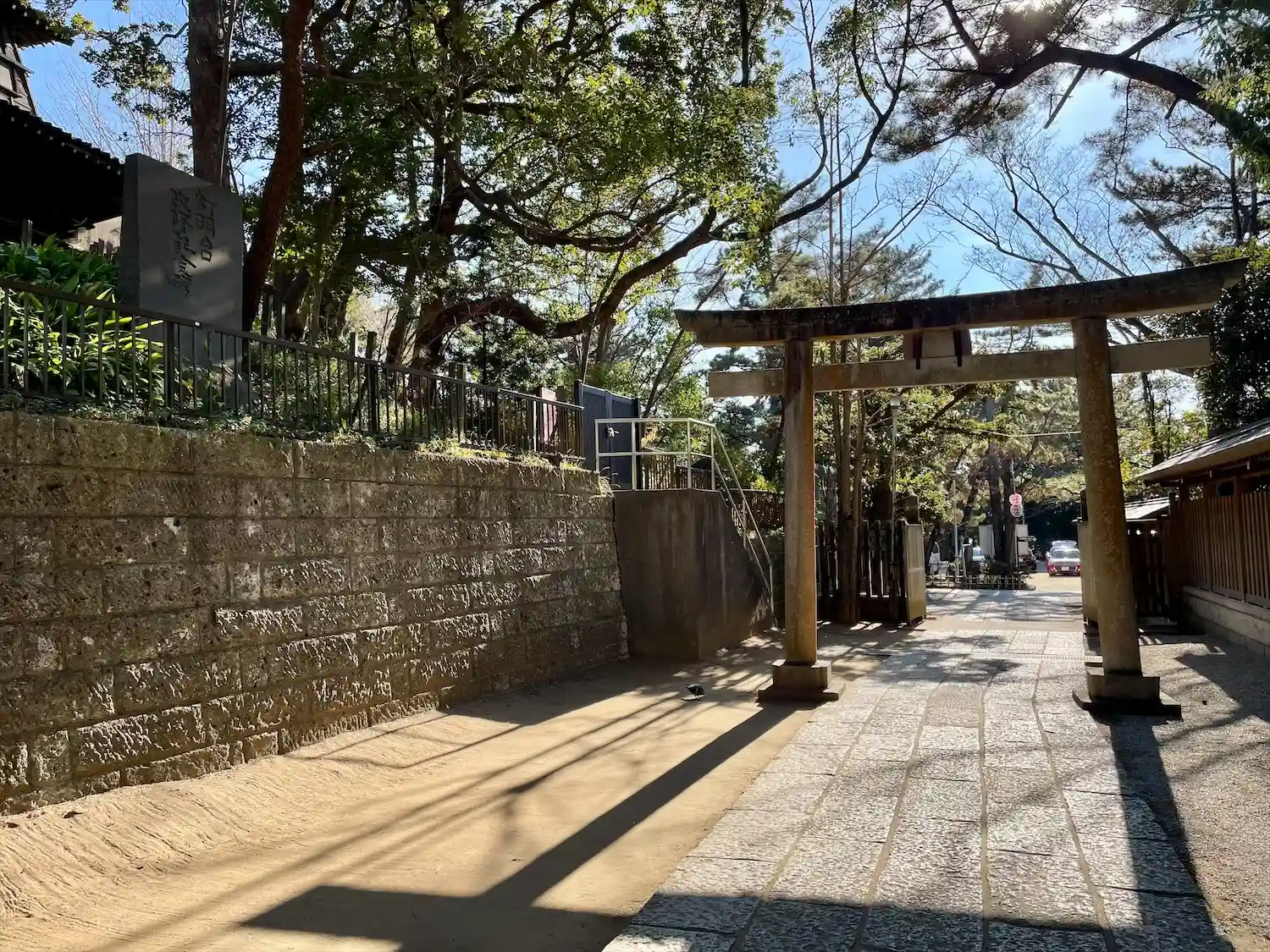 意富比神社(船橋大神宮)の境内摂社で、意富比神社本殿と浅間山の上に建つレトロな灯明台の間を通る参道…
