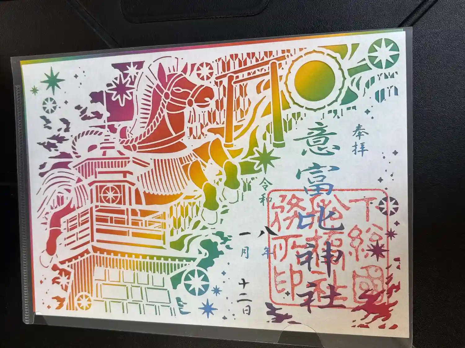 参拝したり写真撮ったりしながら社務所へ向かうと、「◯◯さーん、お待たせしましたー!」とお声がけいただき、御朱印帳を戻していただきました。御朱印は摂社や境内社のはなく、1種類のみでした(優柔不断な私には好都合)