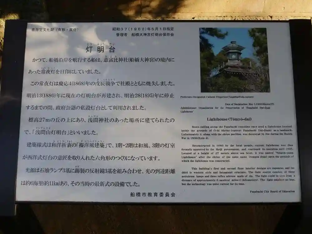 かつて船橋周辺を航行する船は、この神社の常夜灯を夜間の目印にしていたそうです。