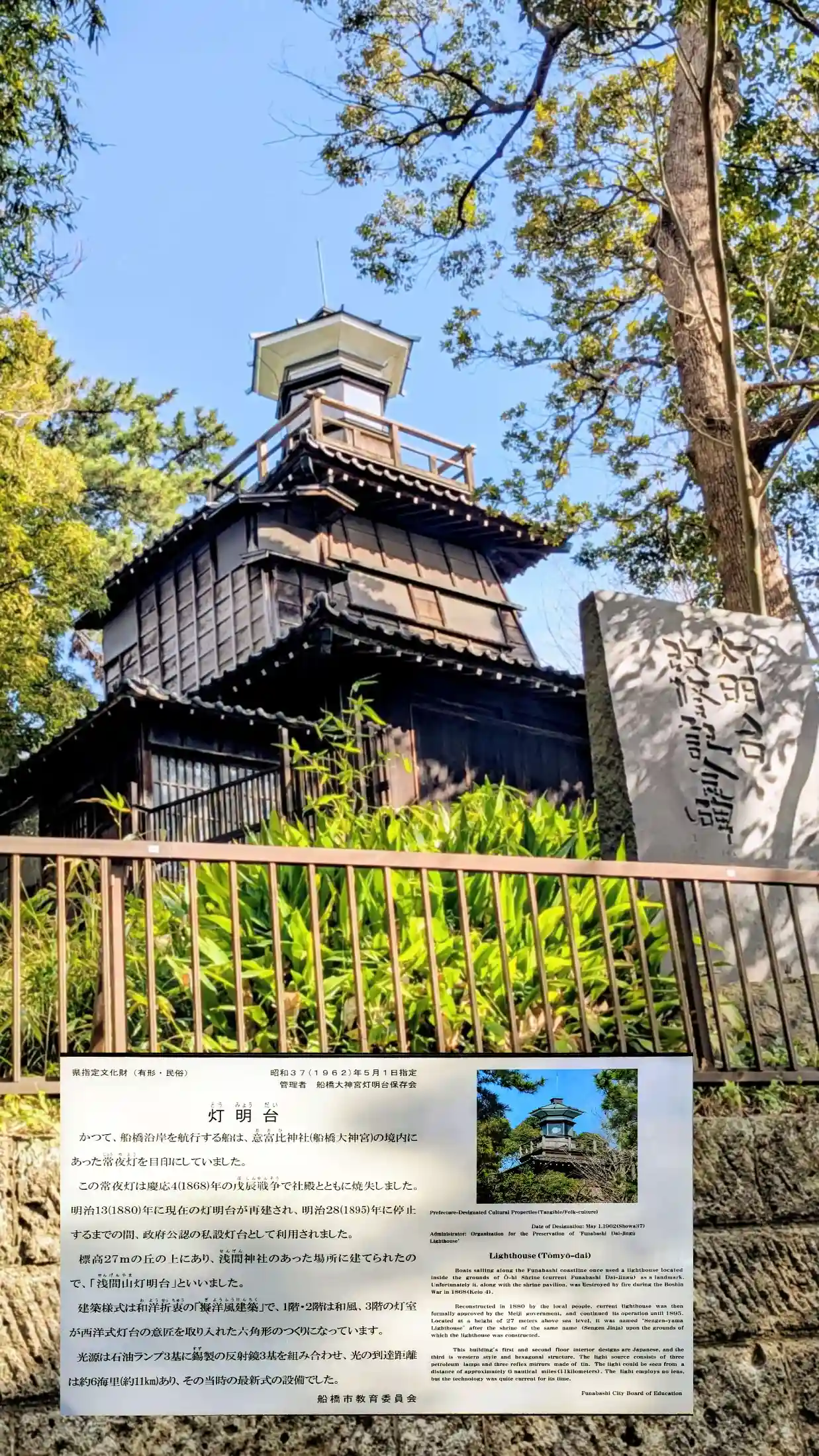 かつて船橋周辺を航行する船は、この神社の常夜灯を夜間の目印にしていたそうです。
