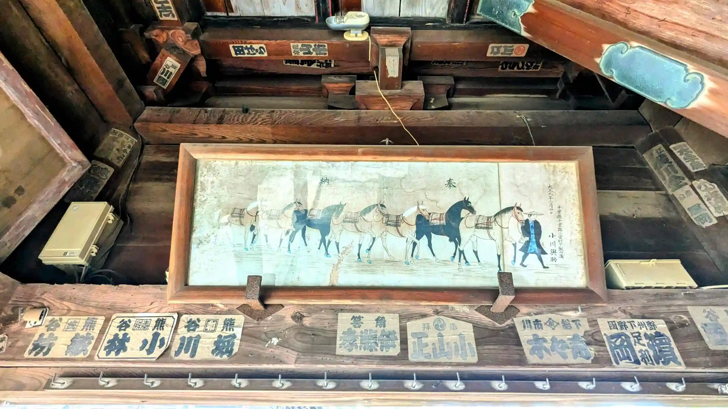内部は信者の方々の寄贈の大絵馬などが奉納されています。