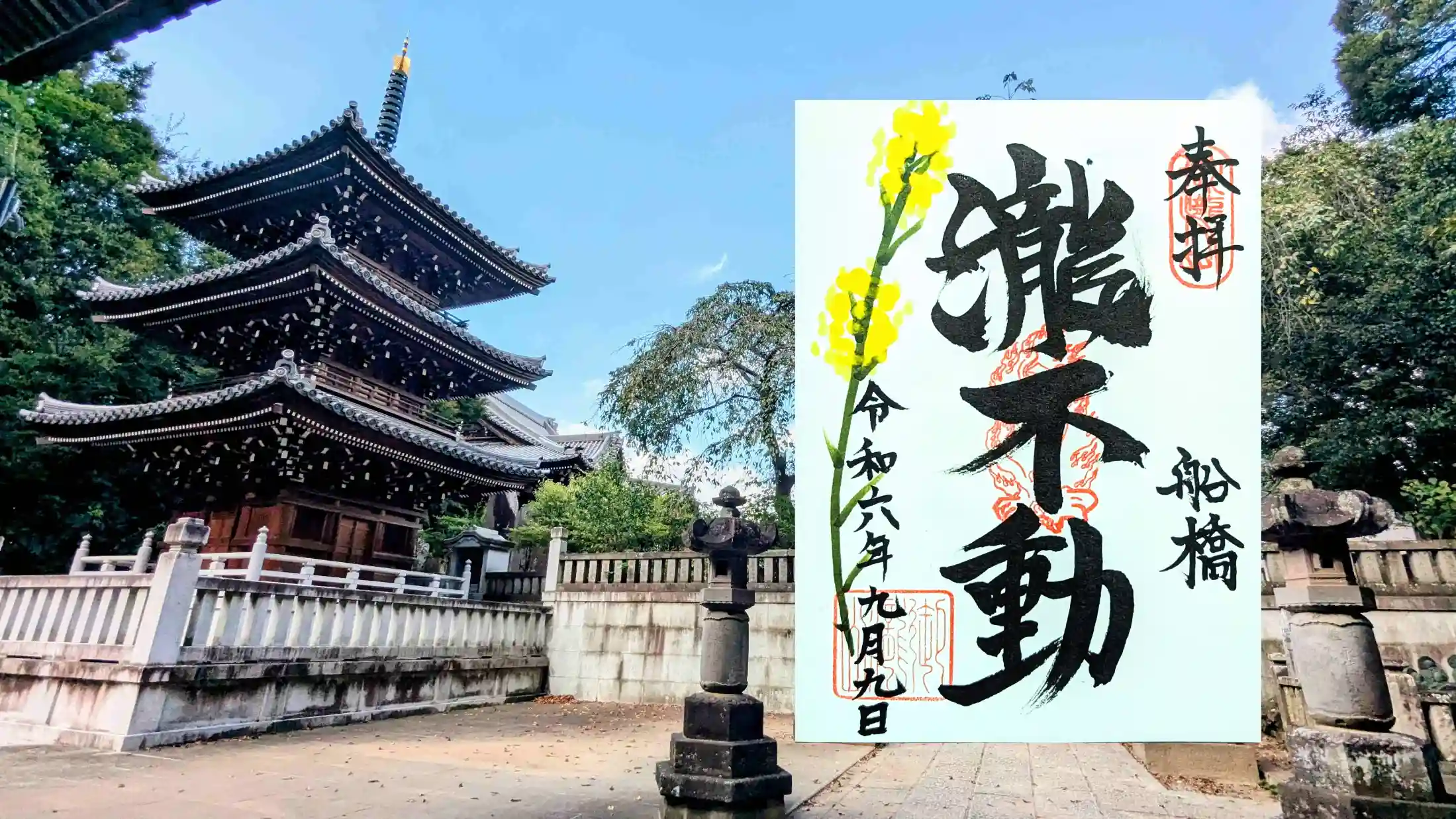 平成30年4月、約9年の歳月をかけて、船橋初の三重宝塔が御瀧の森にそびえました。