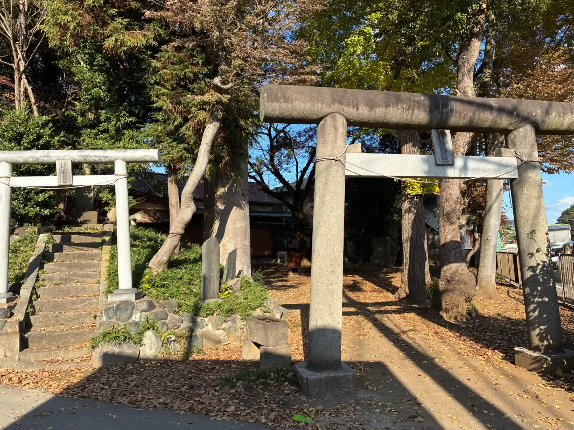 鳥居の奥に集会所があり、その裏に神社があります。新田村の鎮守だったようです。鳥居の脇には富士塚があります。