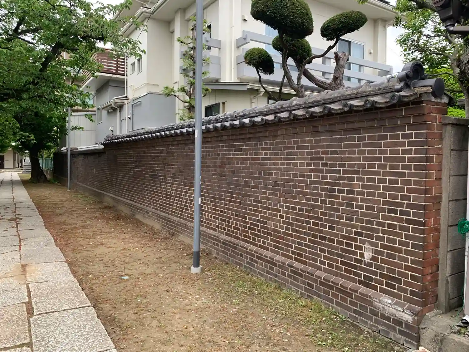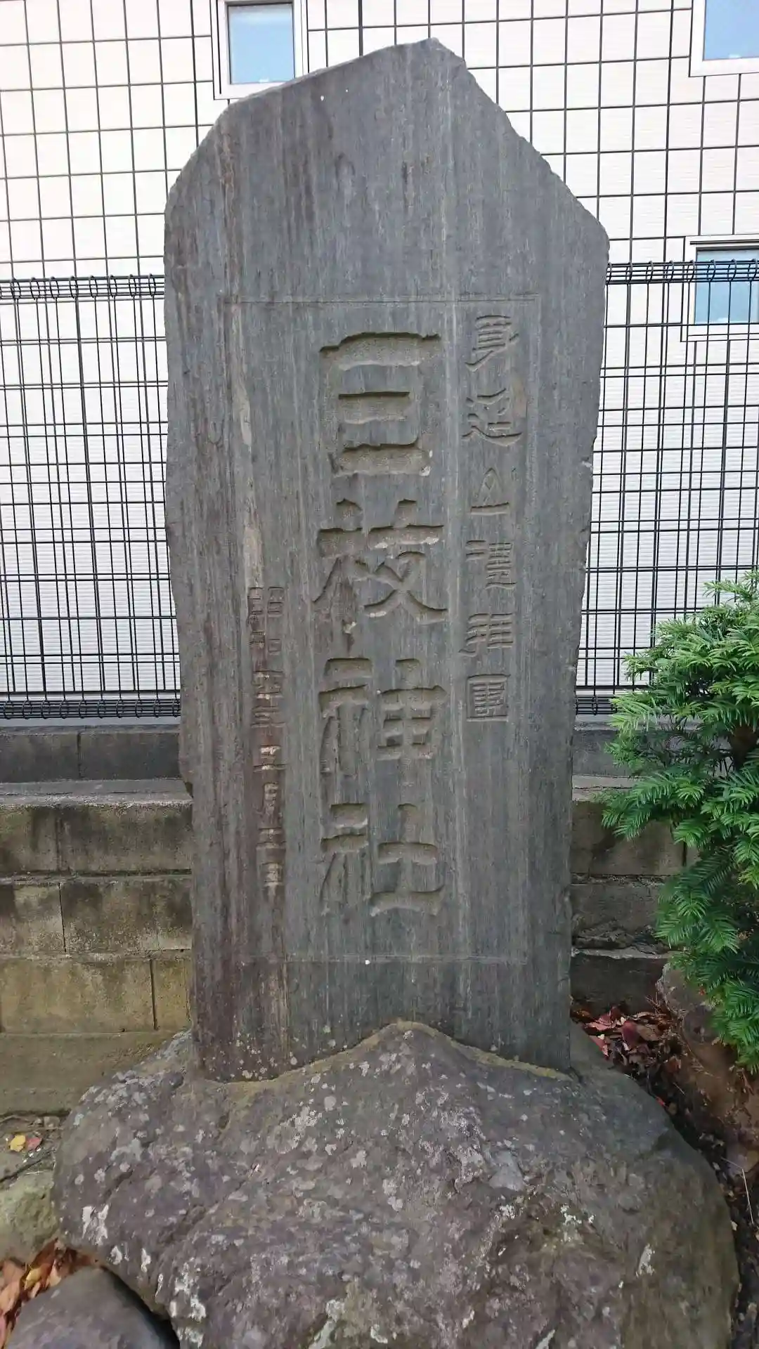旧原木村の鎮守。参道に隣接する集合住宅との境界に歴史のありそうな焼過煉瓦塀があります。