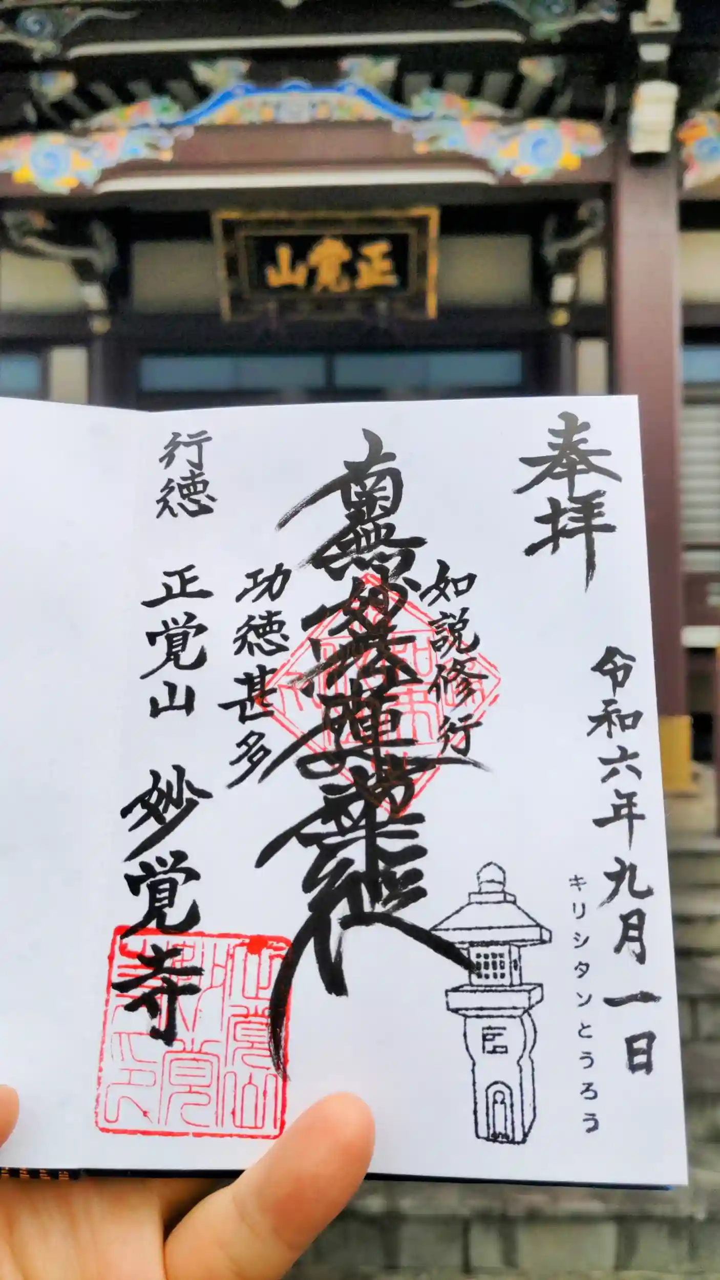 綺麗に整備されたお寺で、とても珍しいキリシタン灯籠があります。