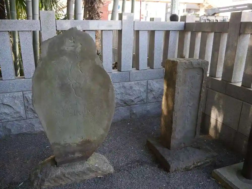 今は竹に覆われていますが、以前は森だったようです。それにしても、鳥居の前の歩道を自転車や歩行者が行き交い、車道はバスまで走る幹線道路。とても“異界”の雰囲気はないのですが、このような場所が現在に至るまで保存されていることに、少し驚きました。地域の人たちの努力があってのことだと思います。