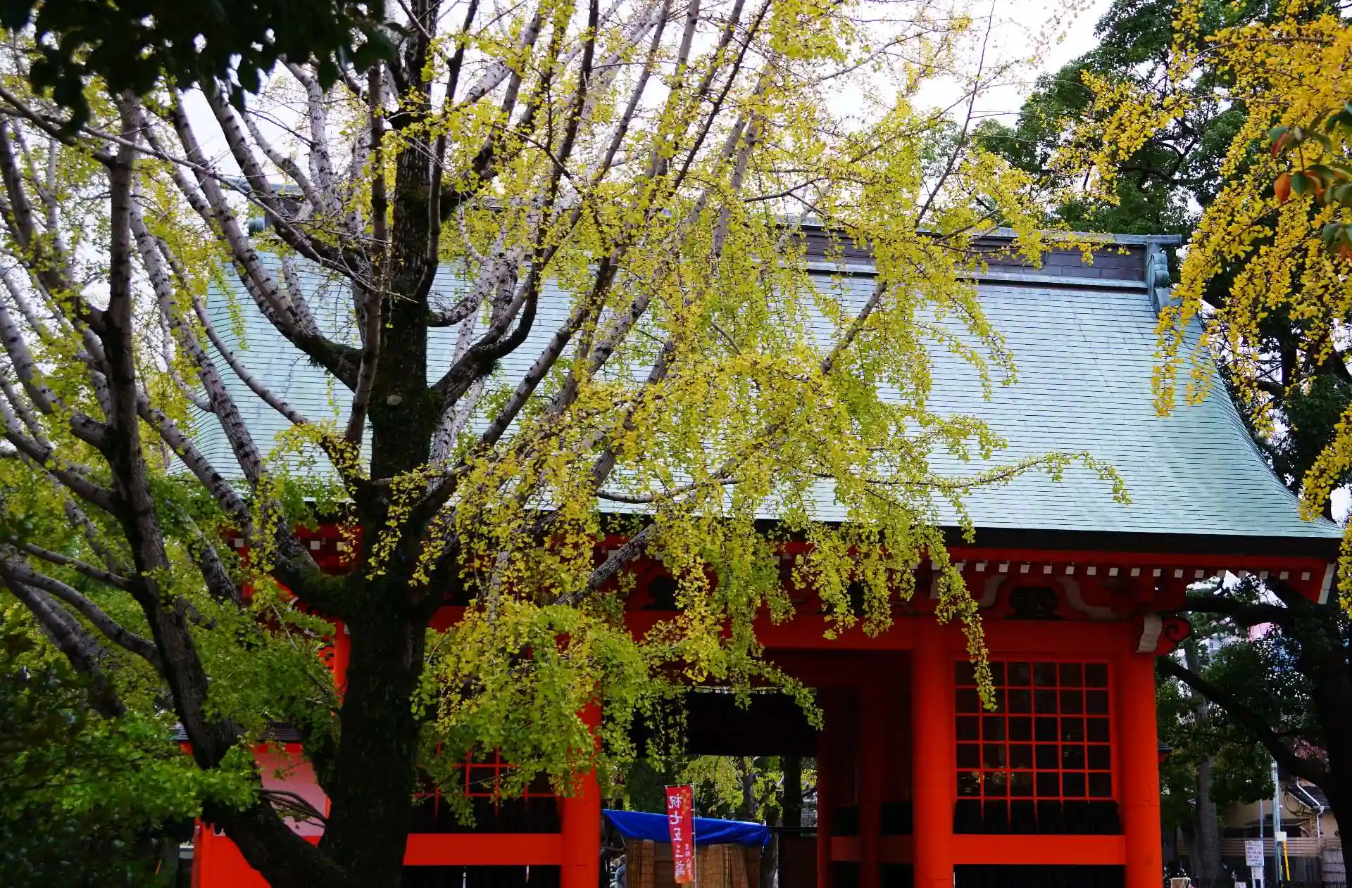 参道の銀杏並木は見頃を迎えています。