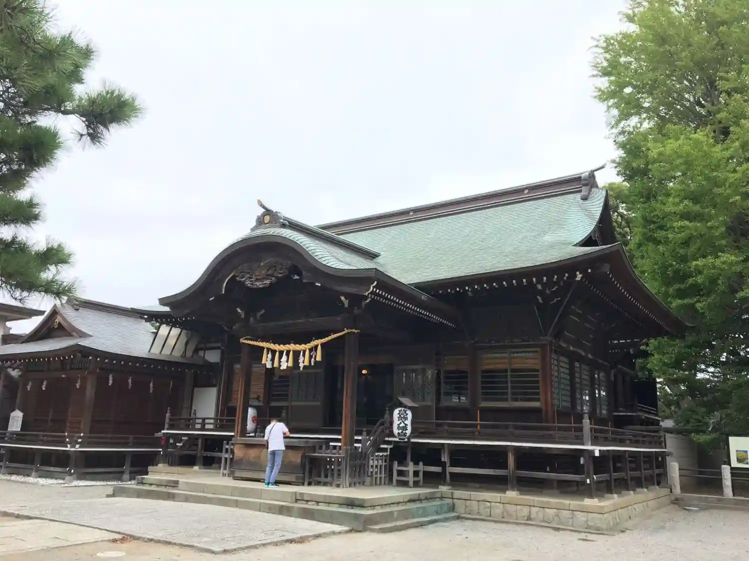 参拝客が次々と御社殿に向かいますので遠くから一枚😊