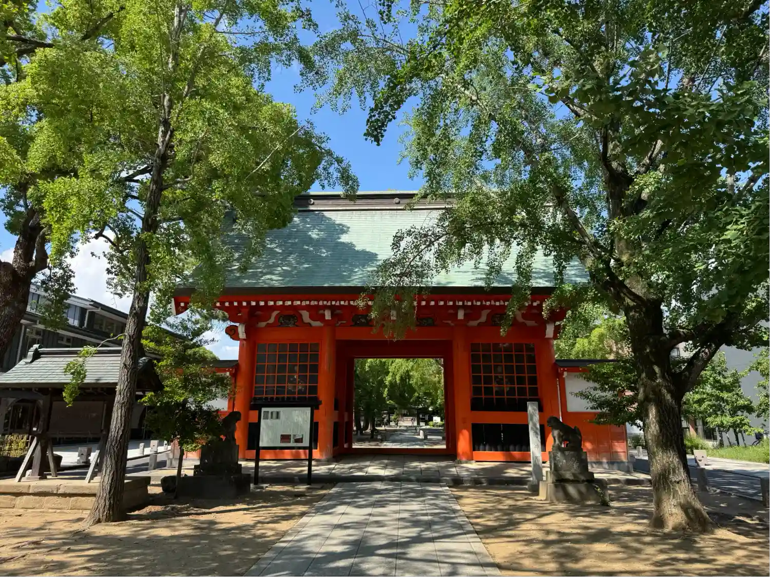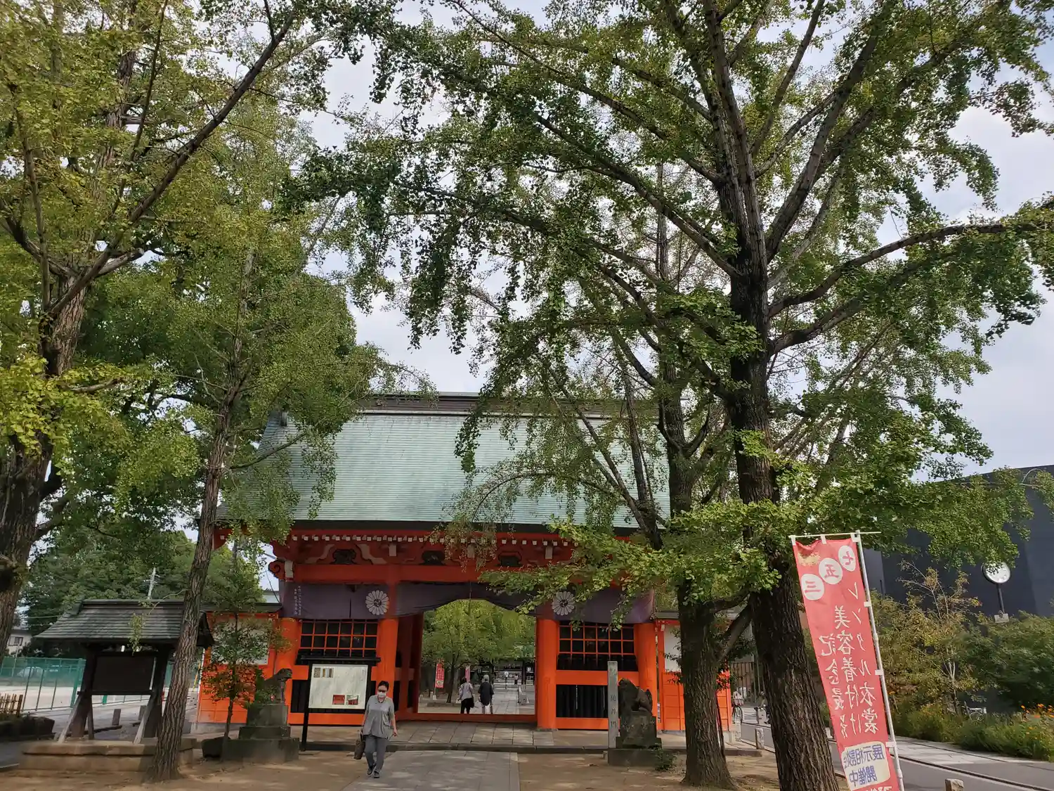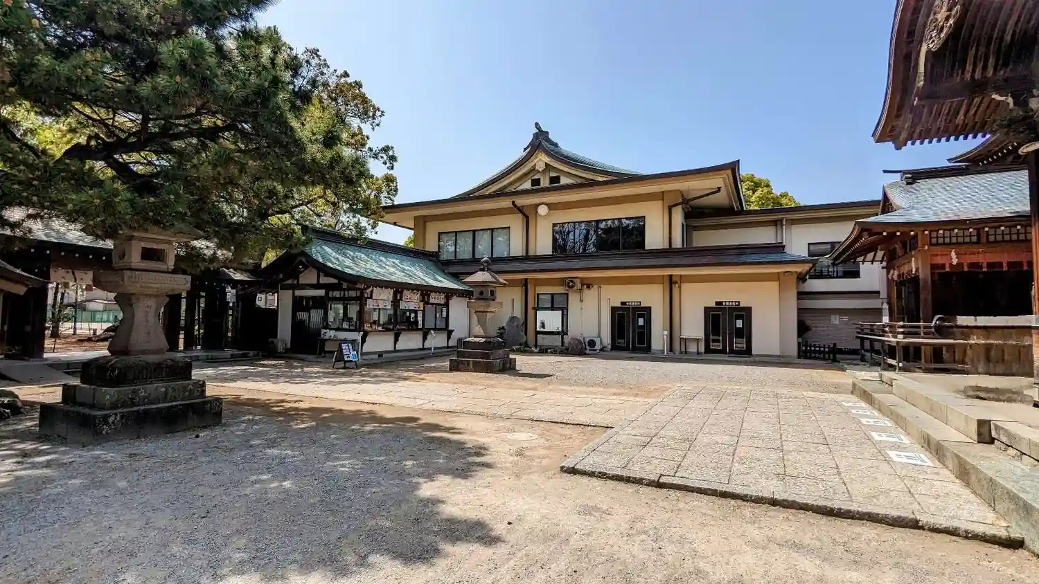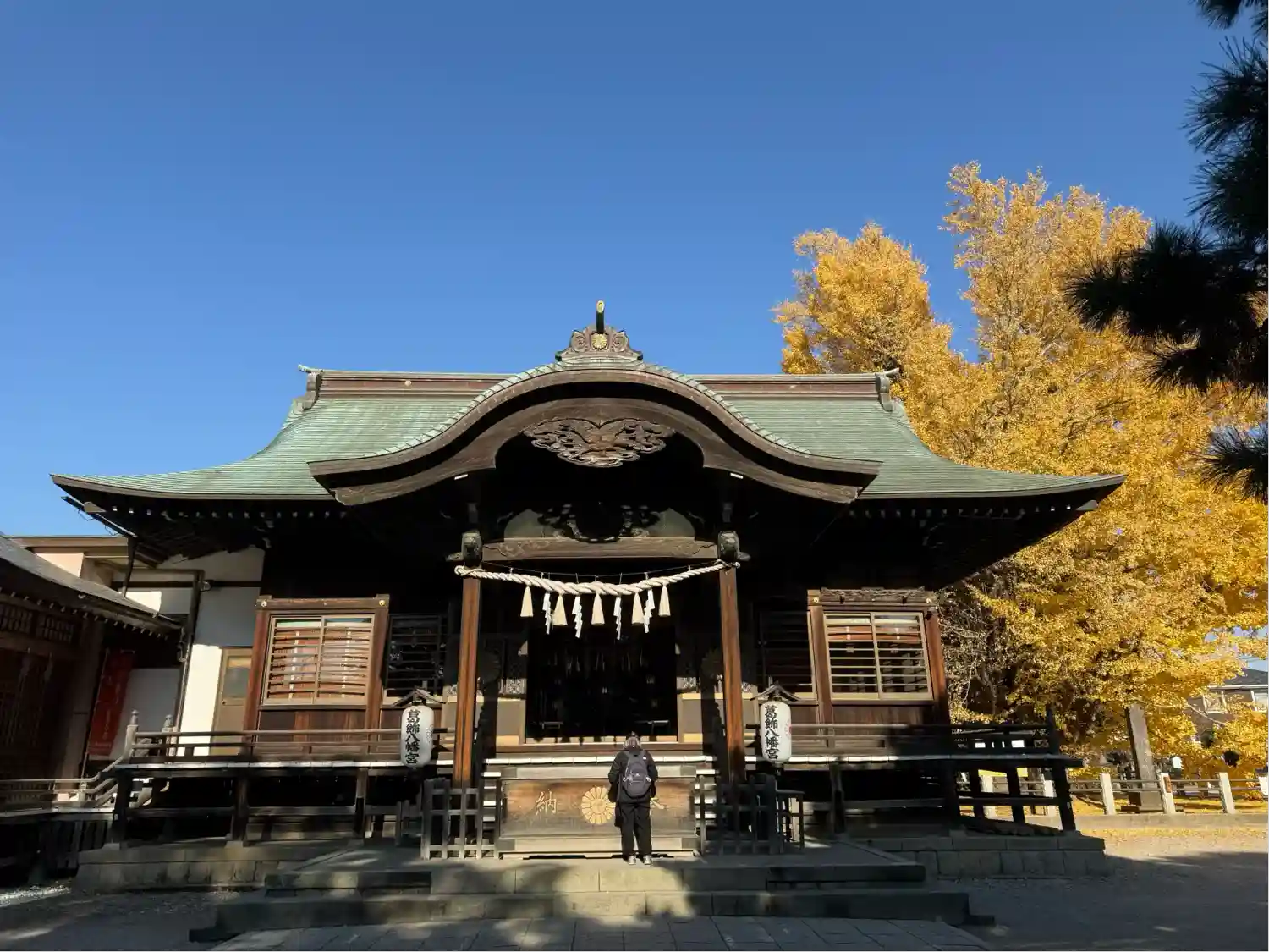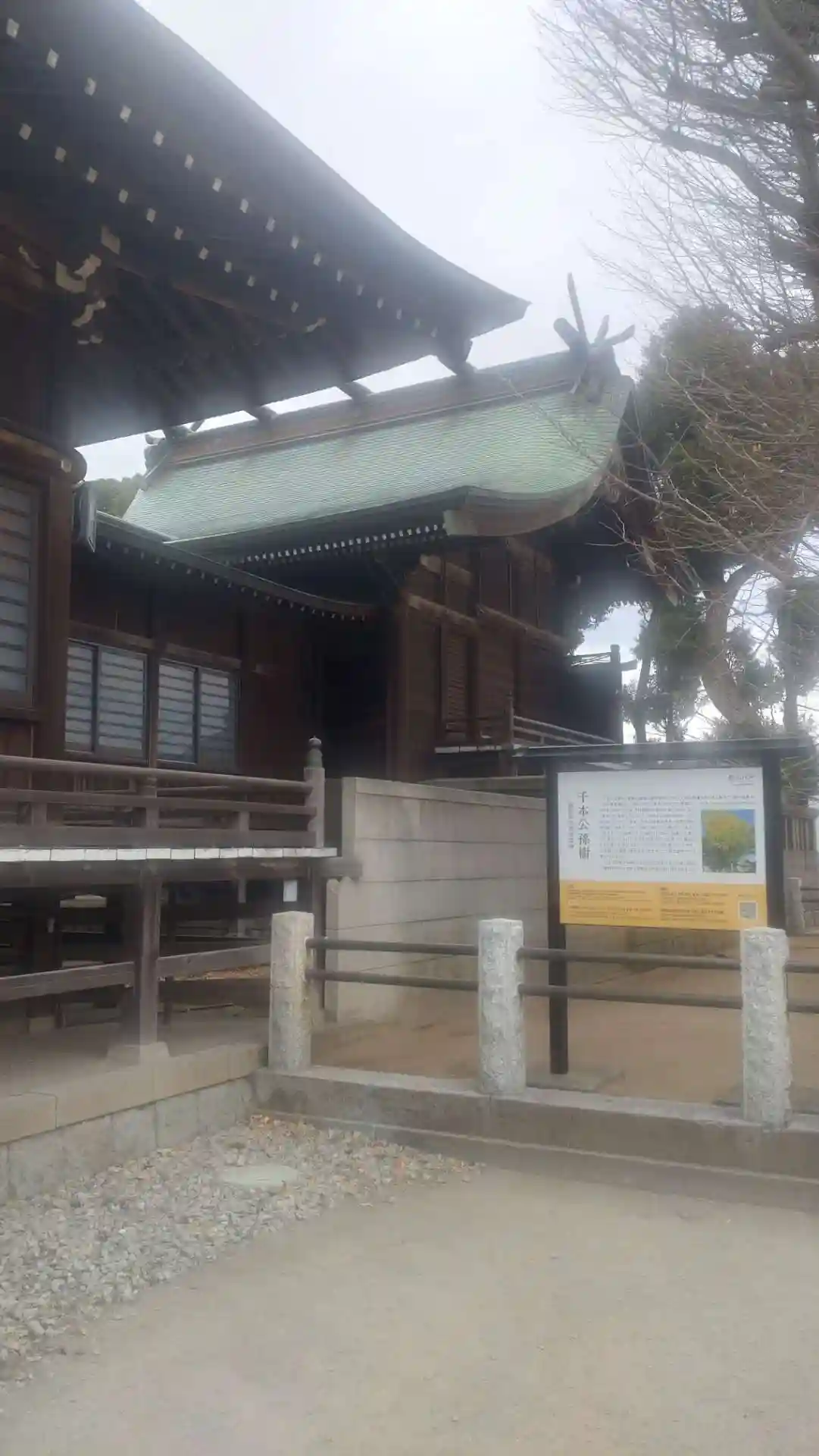 千本公孫樹の側から拝殿を臨む、左奥が社務所