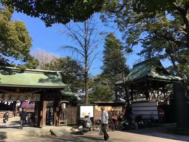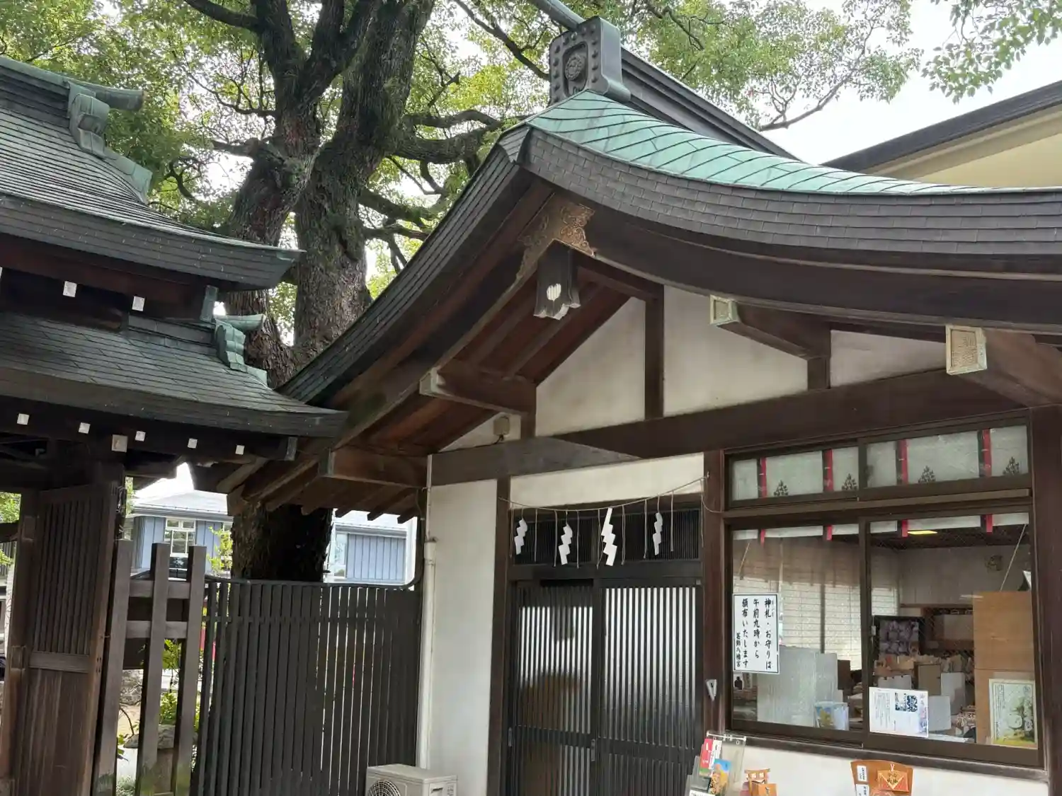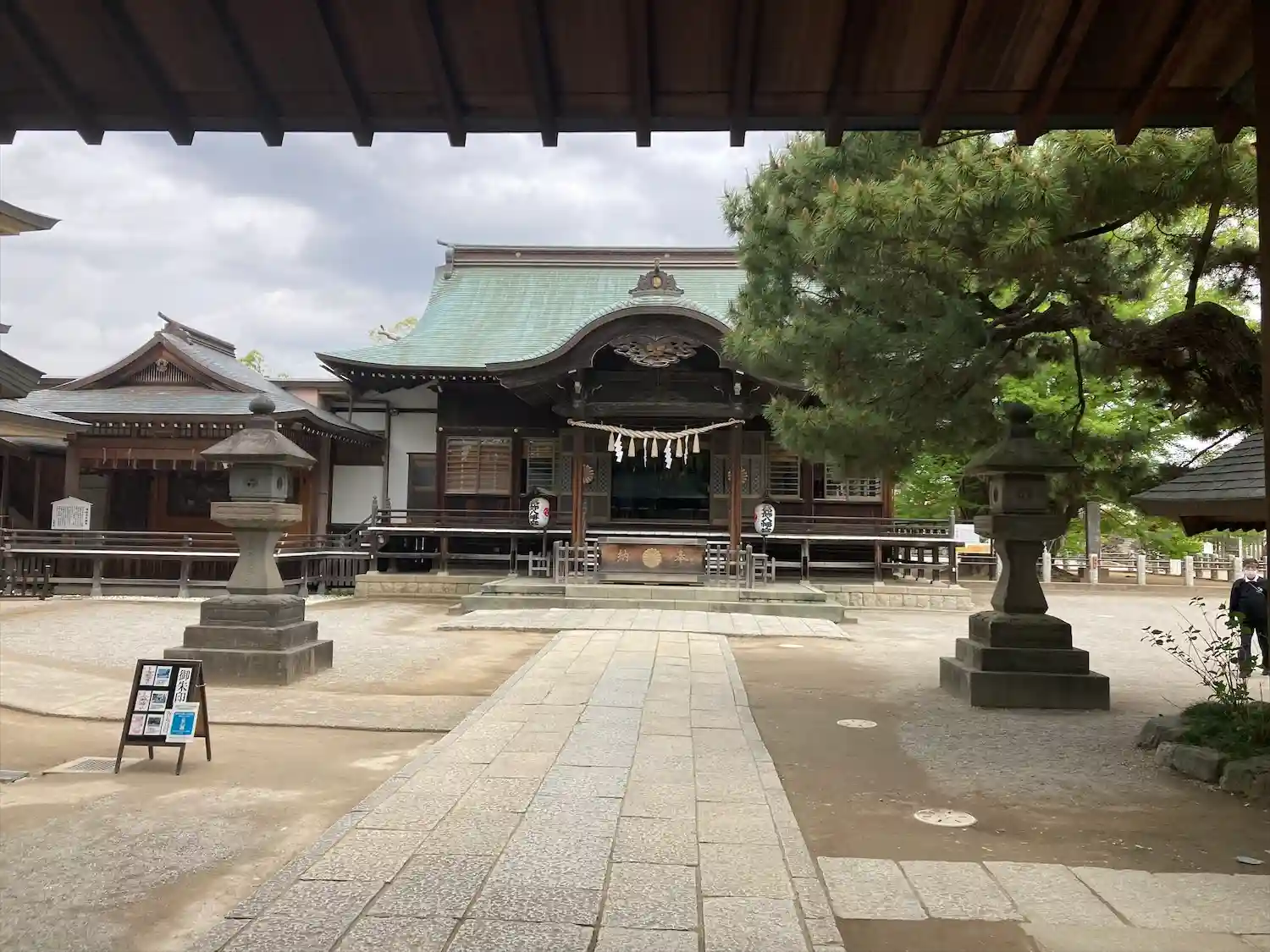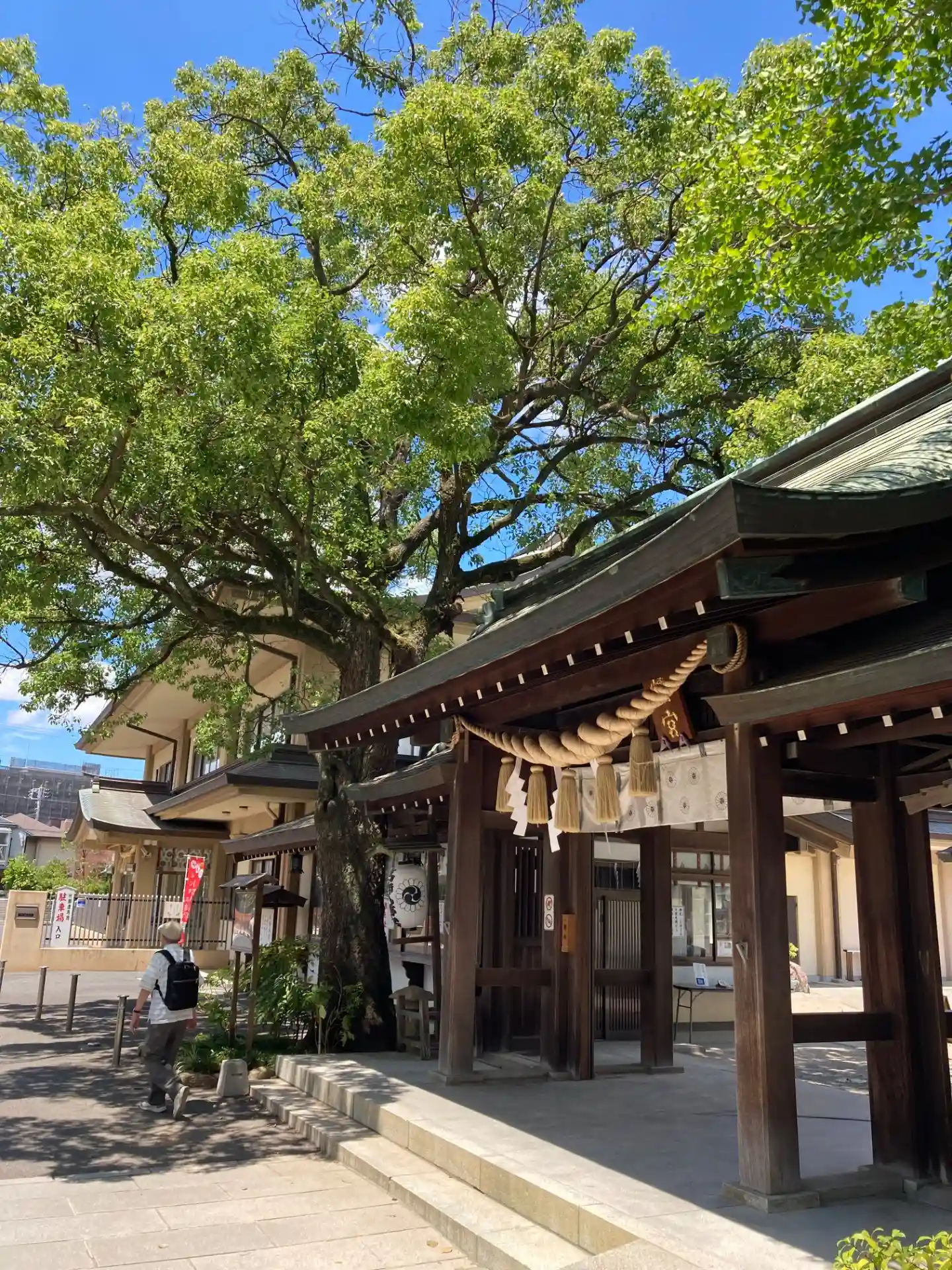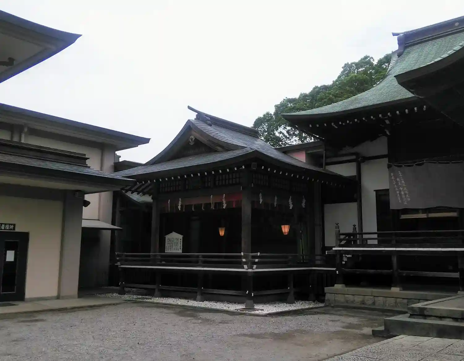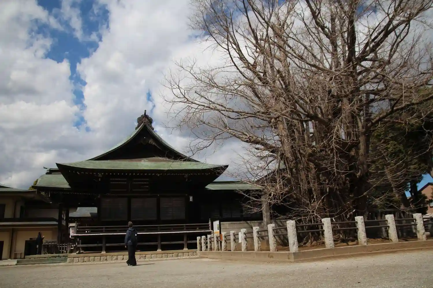 千本公孫樹の側から拝殿を臨む、左奥が社務所
